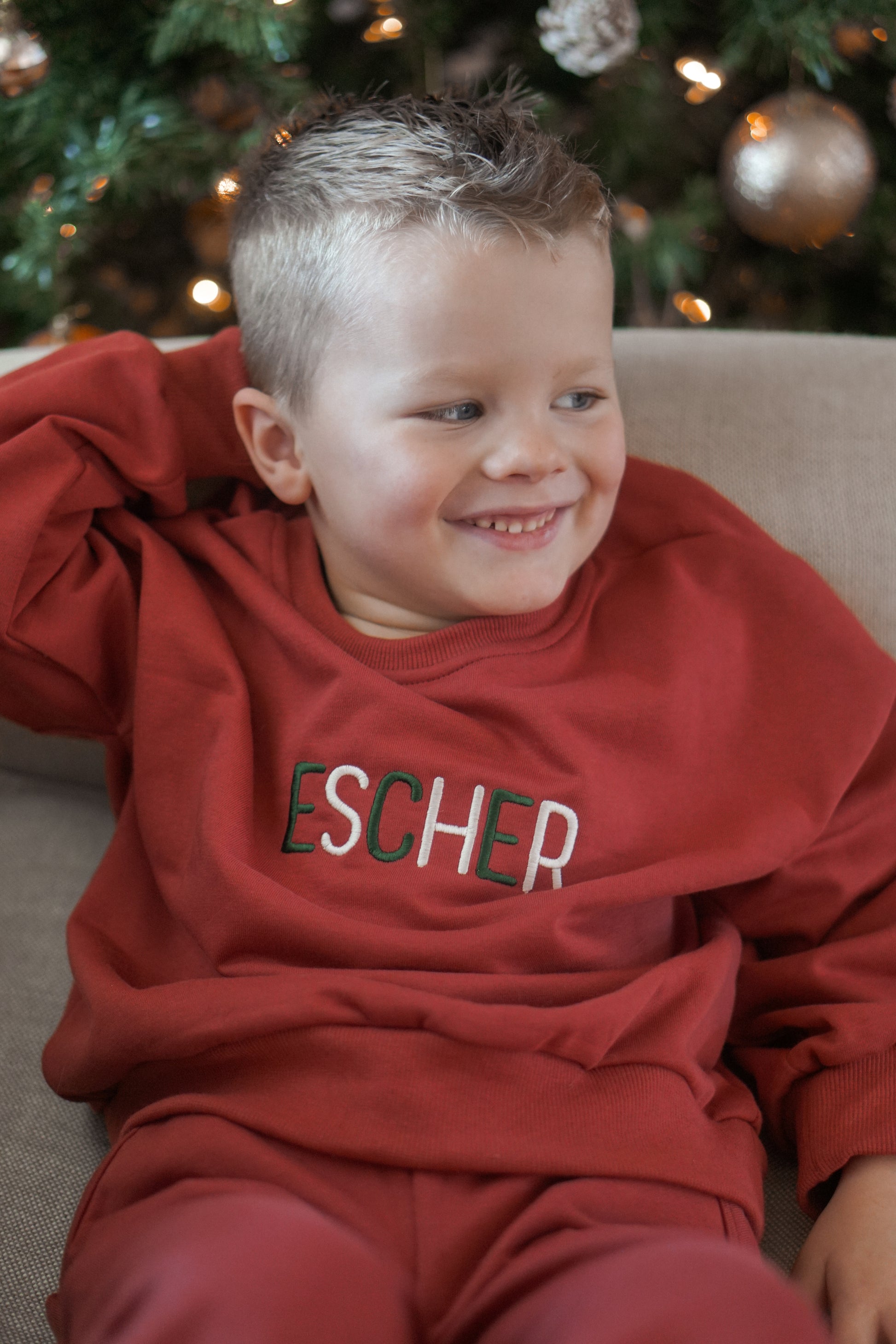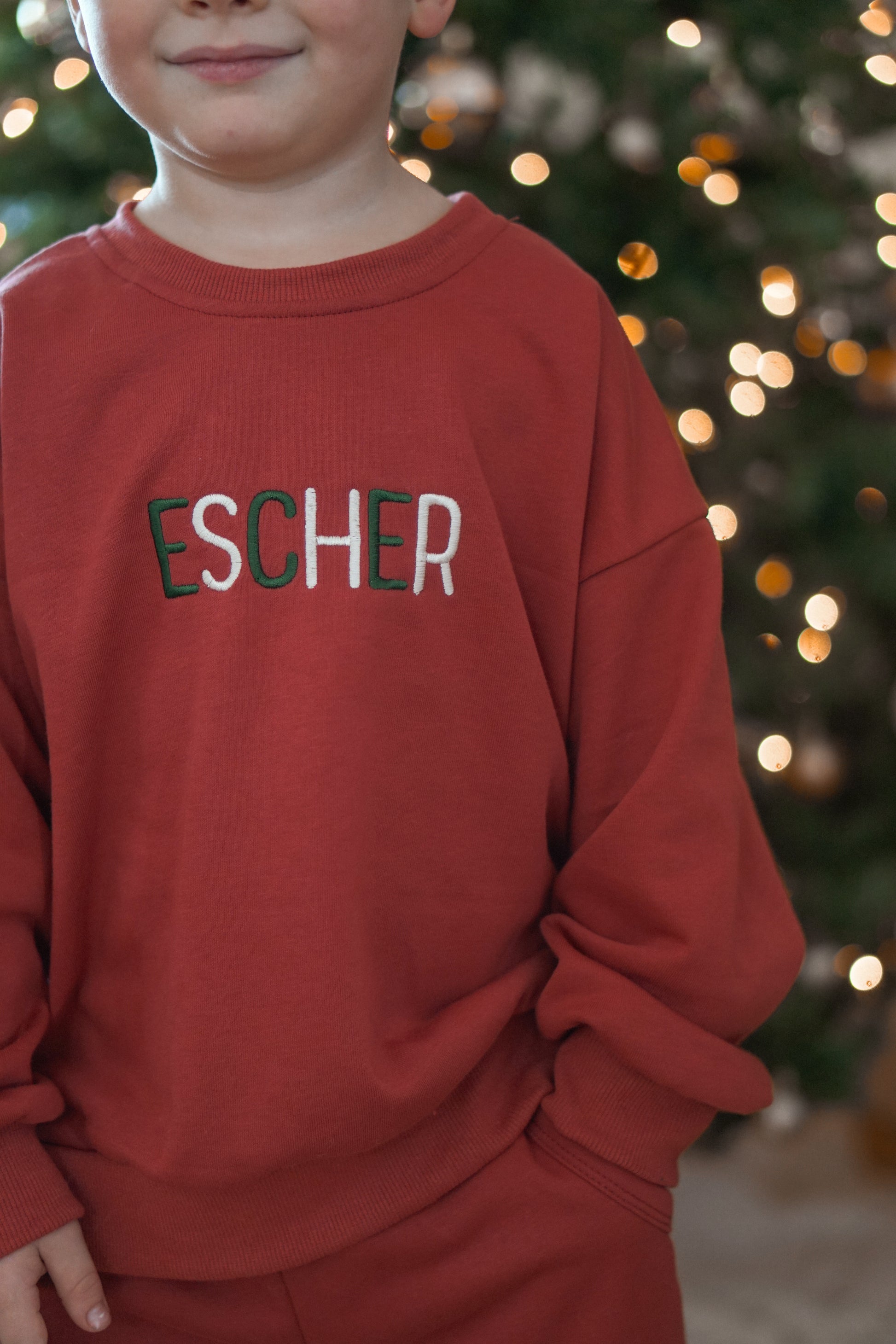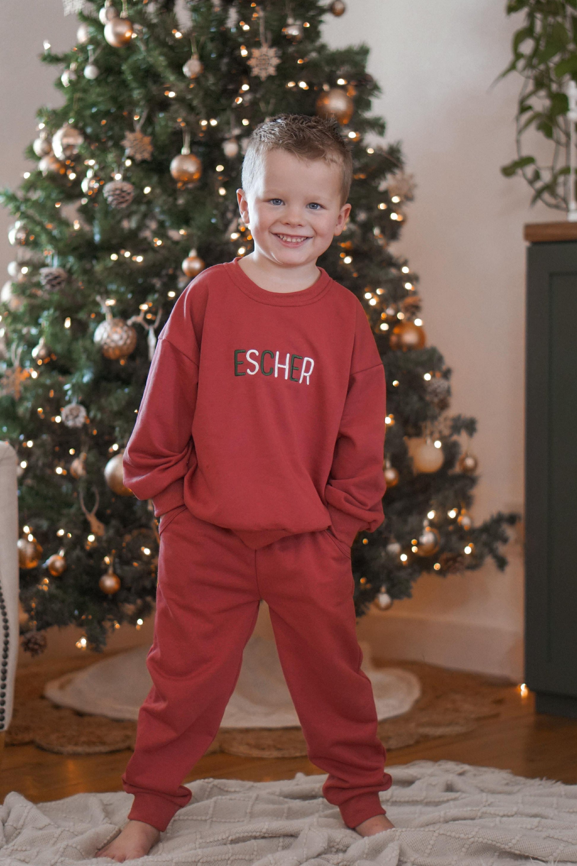 Werten Sie die Weihnachtsgarderobe Ihres Kindes mit unserem individuell bestickten Jogginganzug aus Bio-Baumwolle mit Weihnachtsmotiv auf! Dieser gemütliche Jogginganzug besteht aus 95 % Bio-Baumwolle und 5 % Elastan und sorgt so für Komfort und Atmungsaktivität während der Weihnachtszeit. Personalisieren Sie diesen Anzug mit dem Namen Ihres Kindes, seinen Initialen oder sogar süßen Sprüchen wie „Kleine Schwester“, „Kleiner Bruder“ oder „Frohe Weihnachten“.