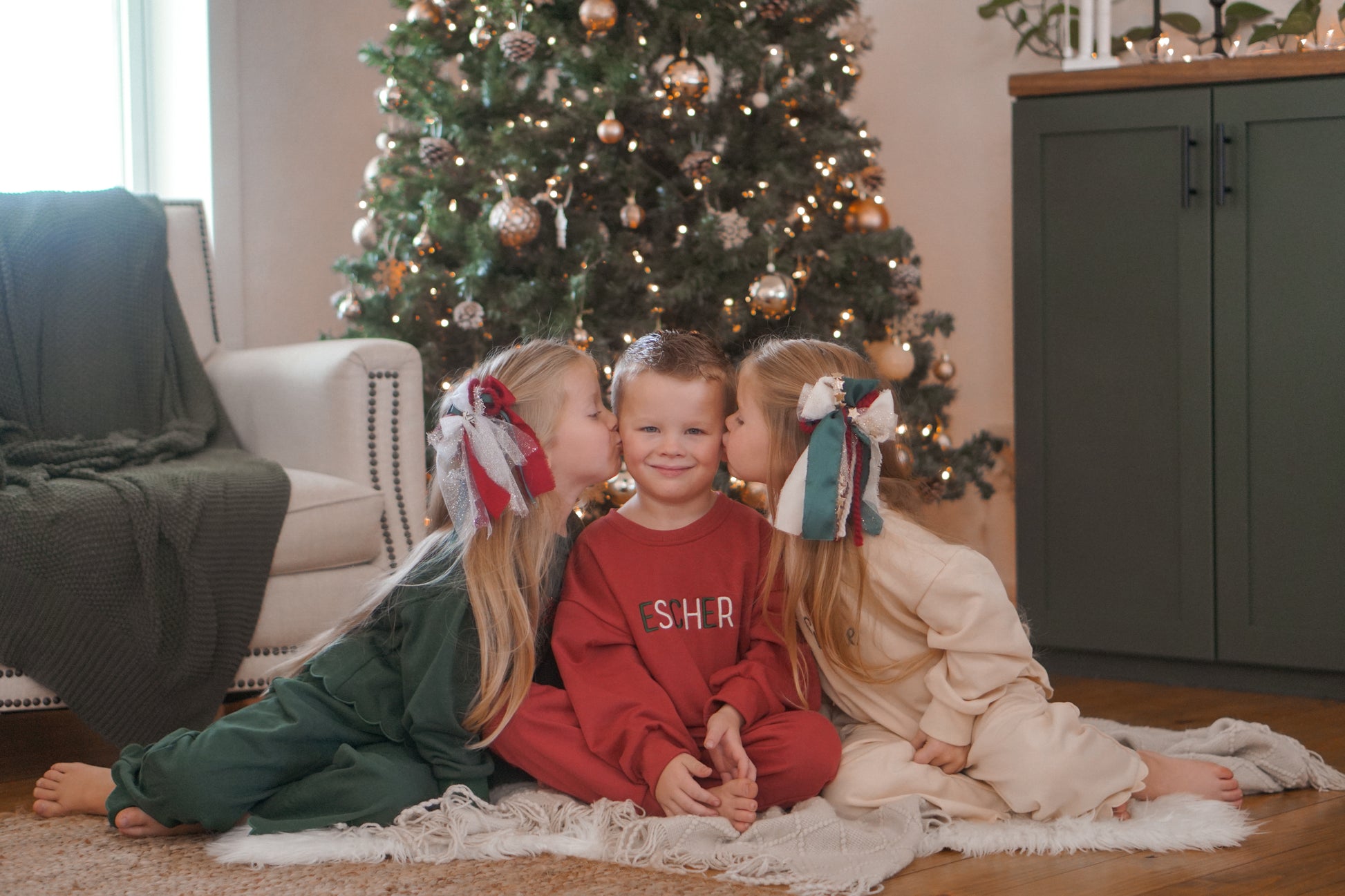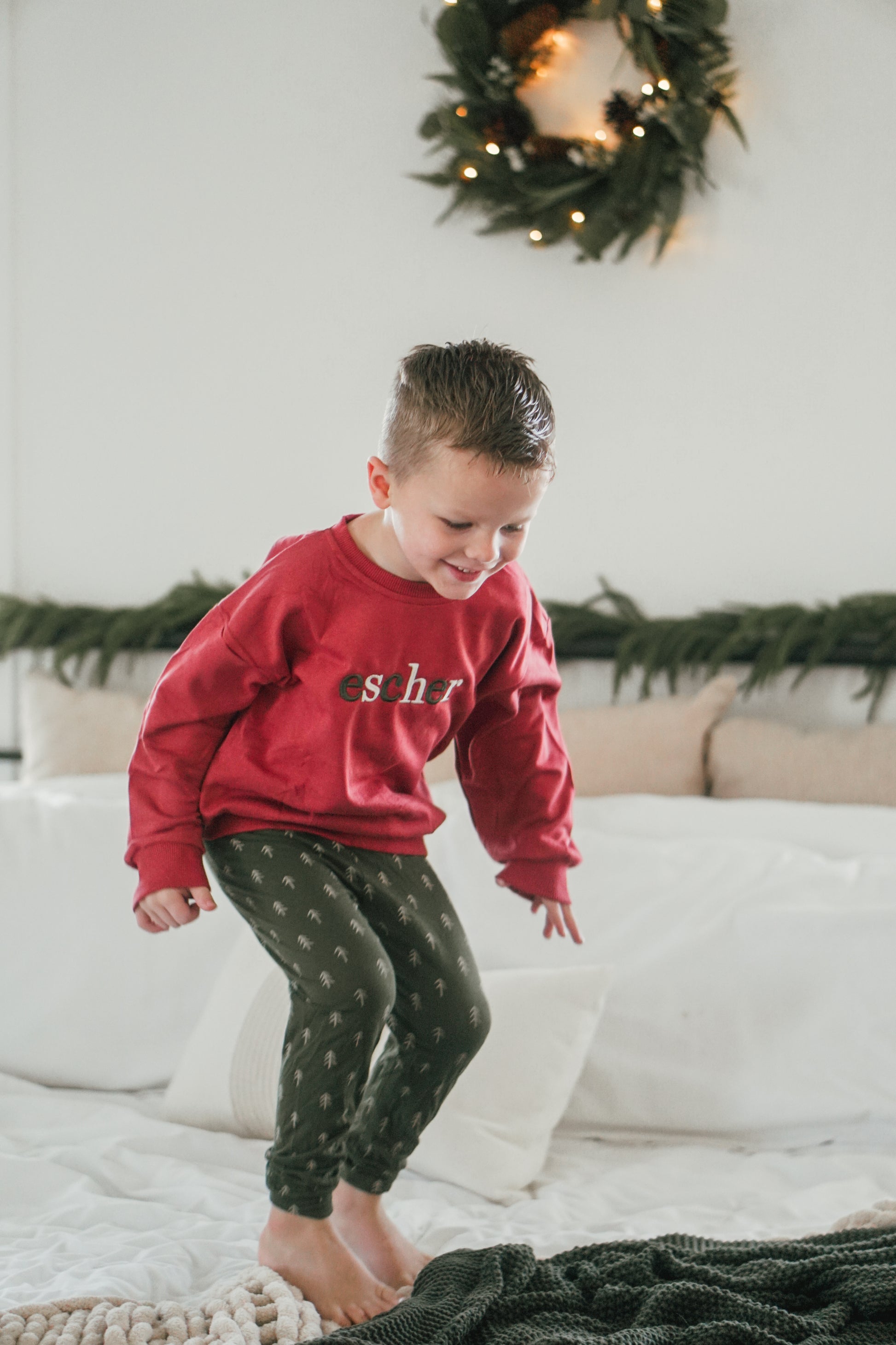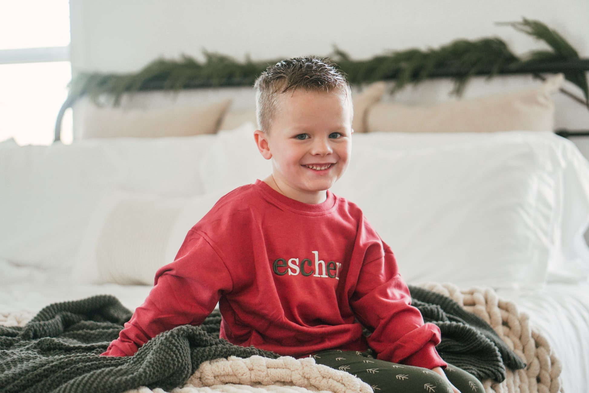 Werten Sie die Weihnachtsgarderobe Ihres Kindes mit unserem individuell bestickten Jogginganzug aus Bio-Baumwolle mit Weihnachtsmotiv auf! Dieser gemütliche Jogginganzug besteht aus 95 % Bio-Baumwolle und 5 % Elastan und sorgt so für Komfort und Atmungsaktivität während der Weihnachtszeit. Personalisieren Sie diesen Anzug mit dem Namen Ihres Kindes, seinen Initialen oder sogar süßen Sprüchen wie „Kleine Schwester“, „Kleiner Bruder“ oder „Frohe Weihnachten“.