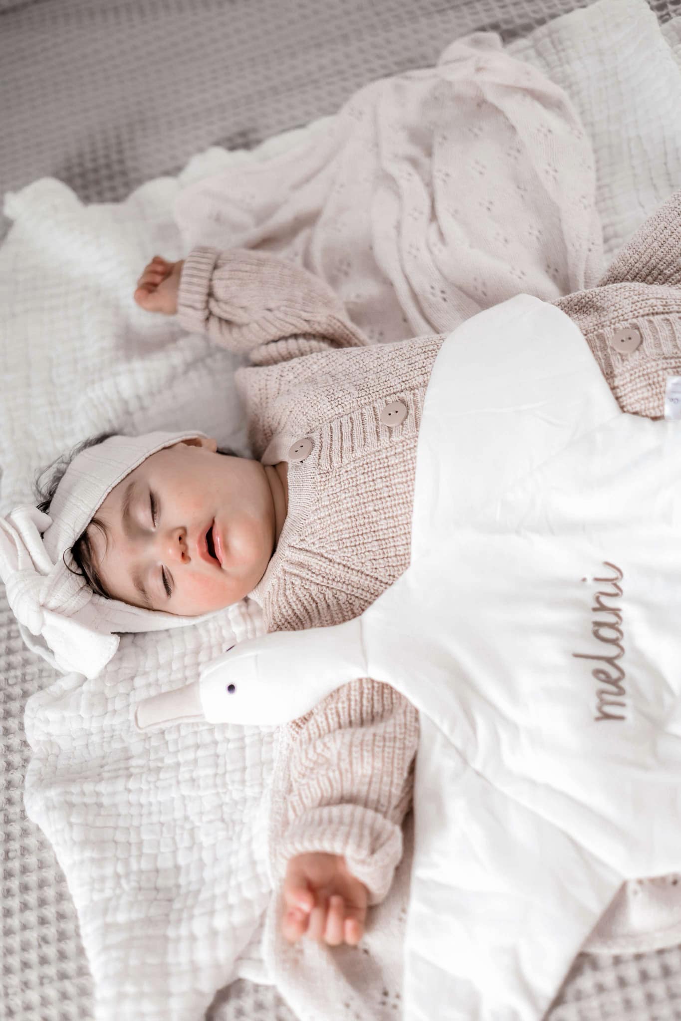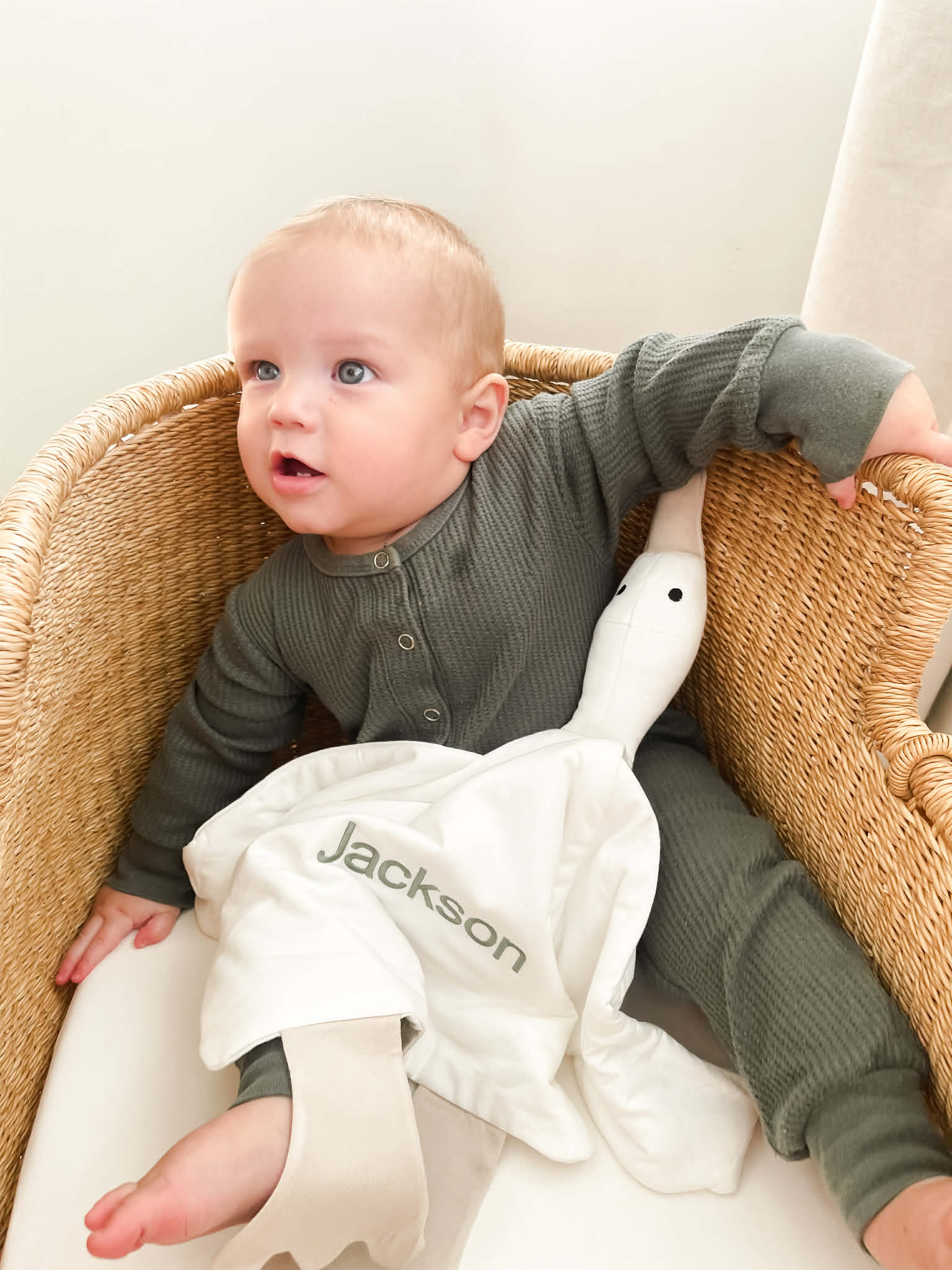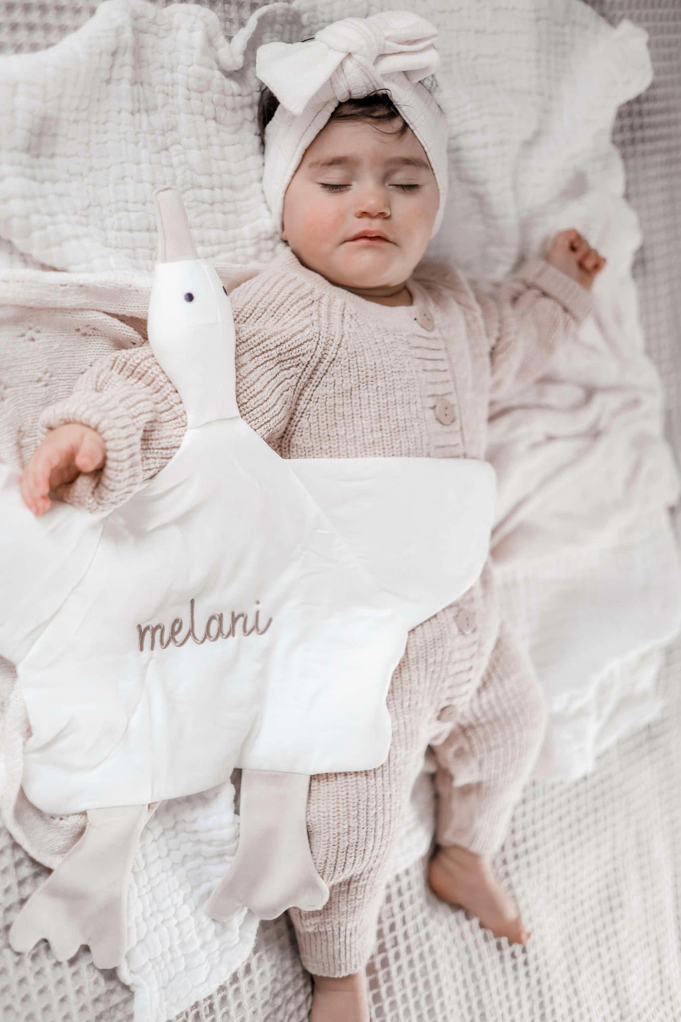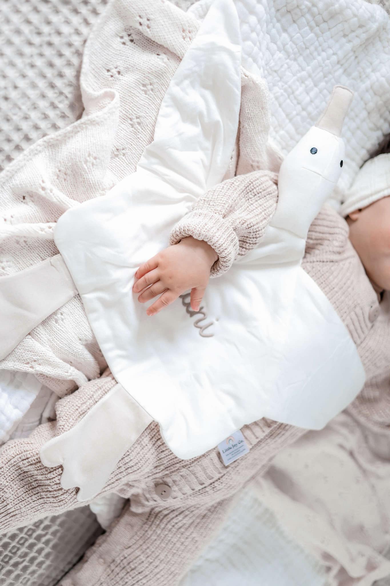 Wir haben für den Körper eine Premium-Mischung aus 95 % Bambusviskose und 5 % Elasthan gewählt, die eine seidig-weiche und atmungsaktive Textur gewährleistet. Der plüschige Kopf und Körper sind großzügig mit einer Daunenalternative gefüllt und schaffen so eine kuschelige Oase für Ihr Kind.