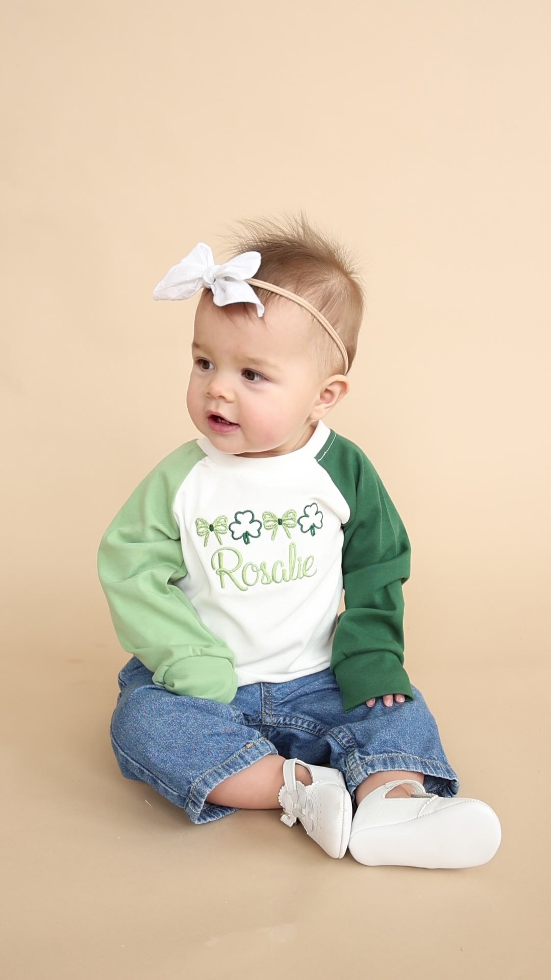 Passen Sie es mit dem Namen Ihrer Wahl, Ihren Initialen oder einem festlichen Spruch wie „Mein erster St. Patrick's Day“ oder „LUCKY“ an.