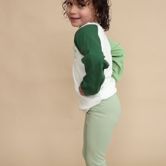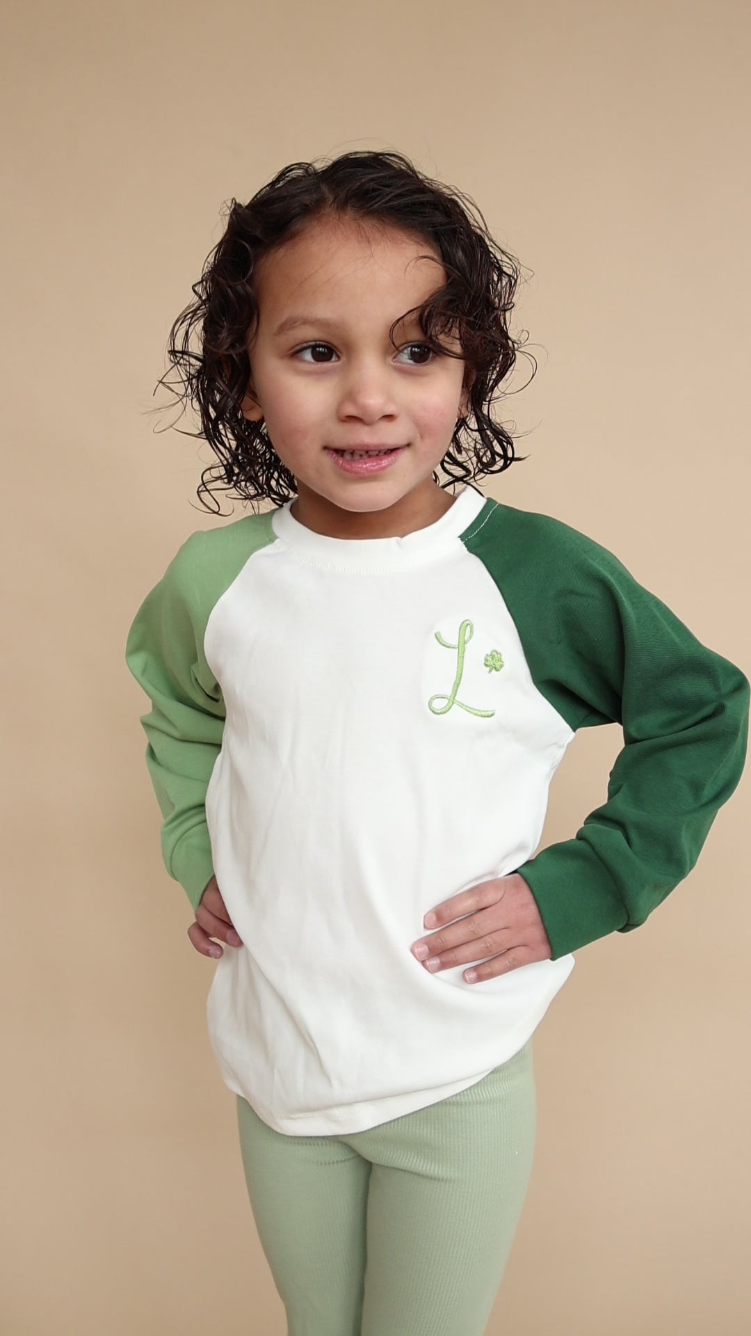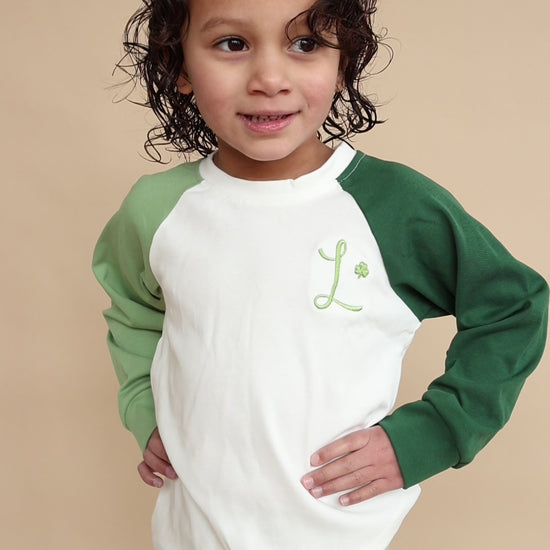 Verleihen Sie der Garderobe Ihres Kindes mit unserem individuell bestickten St. Patrick's Day-T-Shirt aus Bio-Baumwolle in Colorblock-Optik einen Hauch von festlichem Charme! Dieses T-Shirt aus einer weichen Mischung aus 95 % Bio-Baumwolle und 5 % Elastan bietet bequemen Tragekomfort mit einem Hauch von Stretch für mehr Bewegungsfreiheit. Das Colorblock-Design sorgt für einen modernen, stilvollen Look, während die individuelle Stickerei eine einzigartige, persönliche Note verleiht. Dieses T-Shirt in gemischten grünen Colorblock-Optik ist perfekt für Feiertagstreffen, Familienfotos oder einfach nur für die Feiertage und eine vielseitige und umweltfreundliche Wahl für die saisonalen Outfits Ihres Kindes.