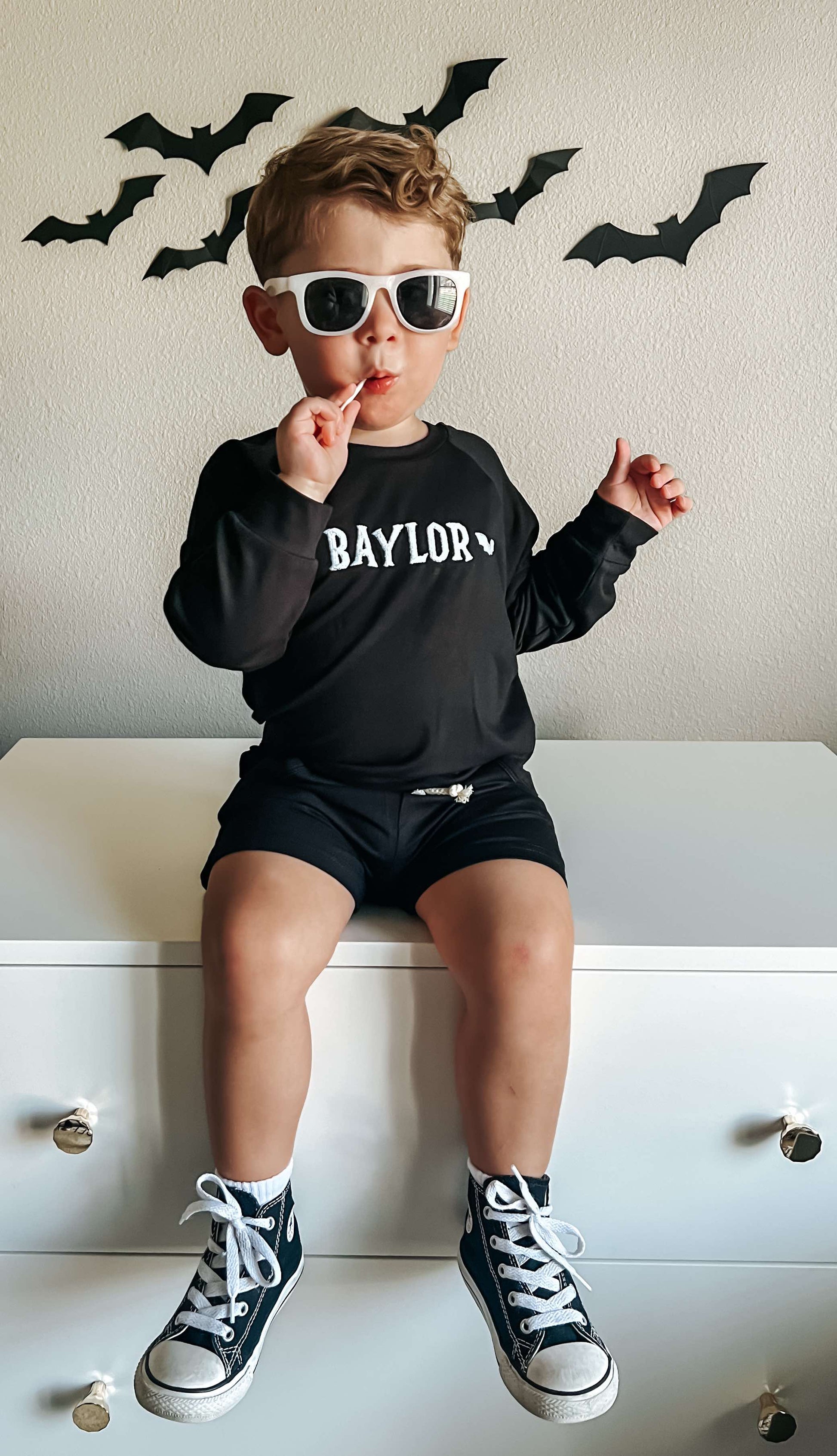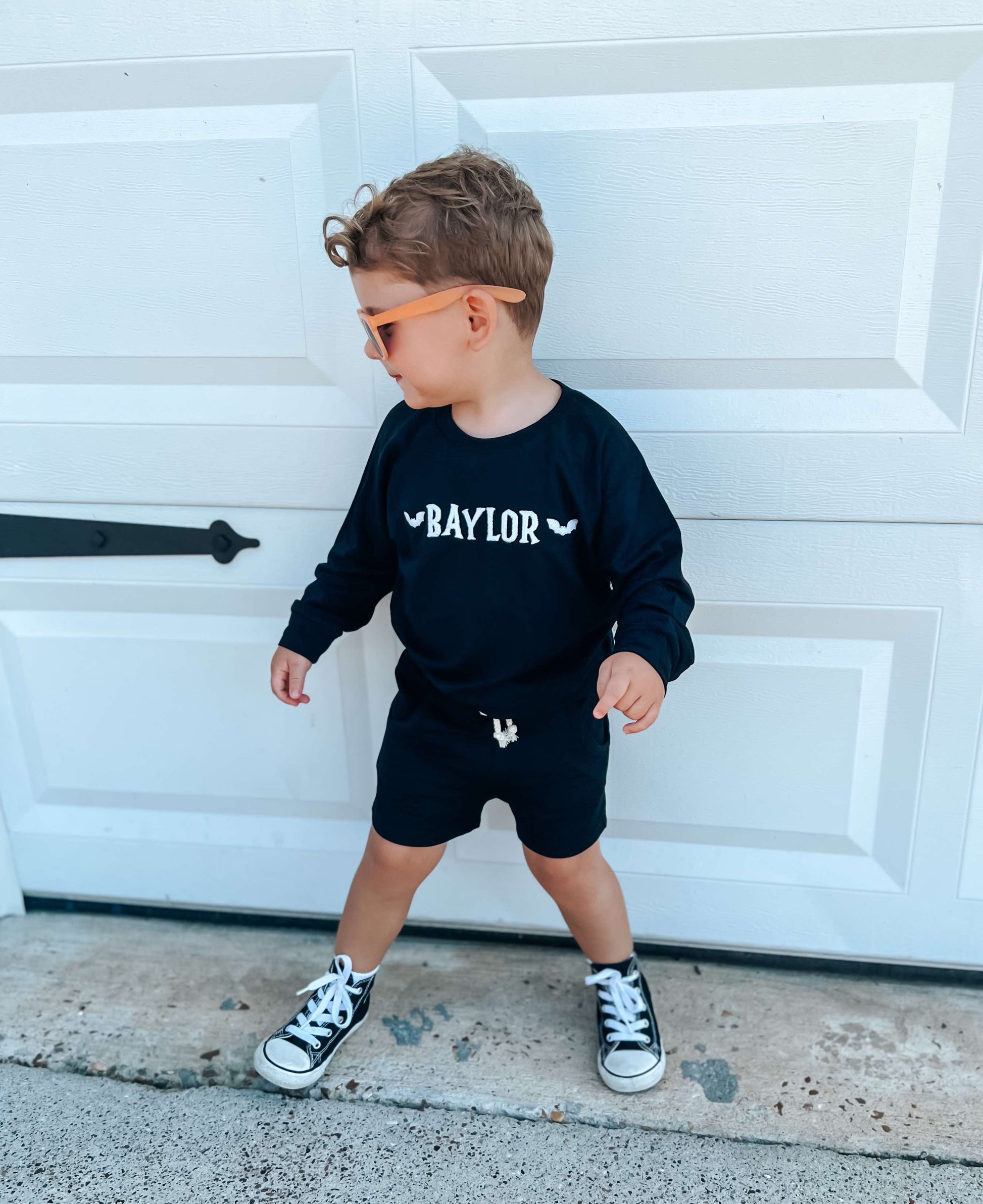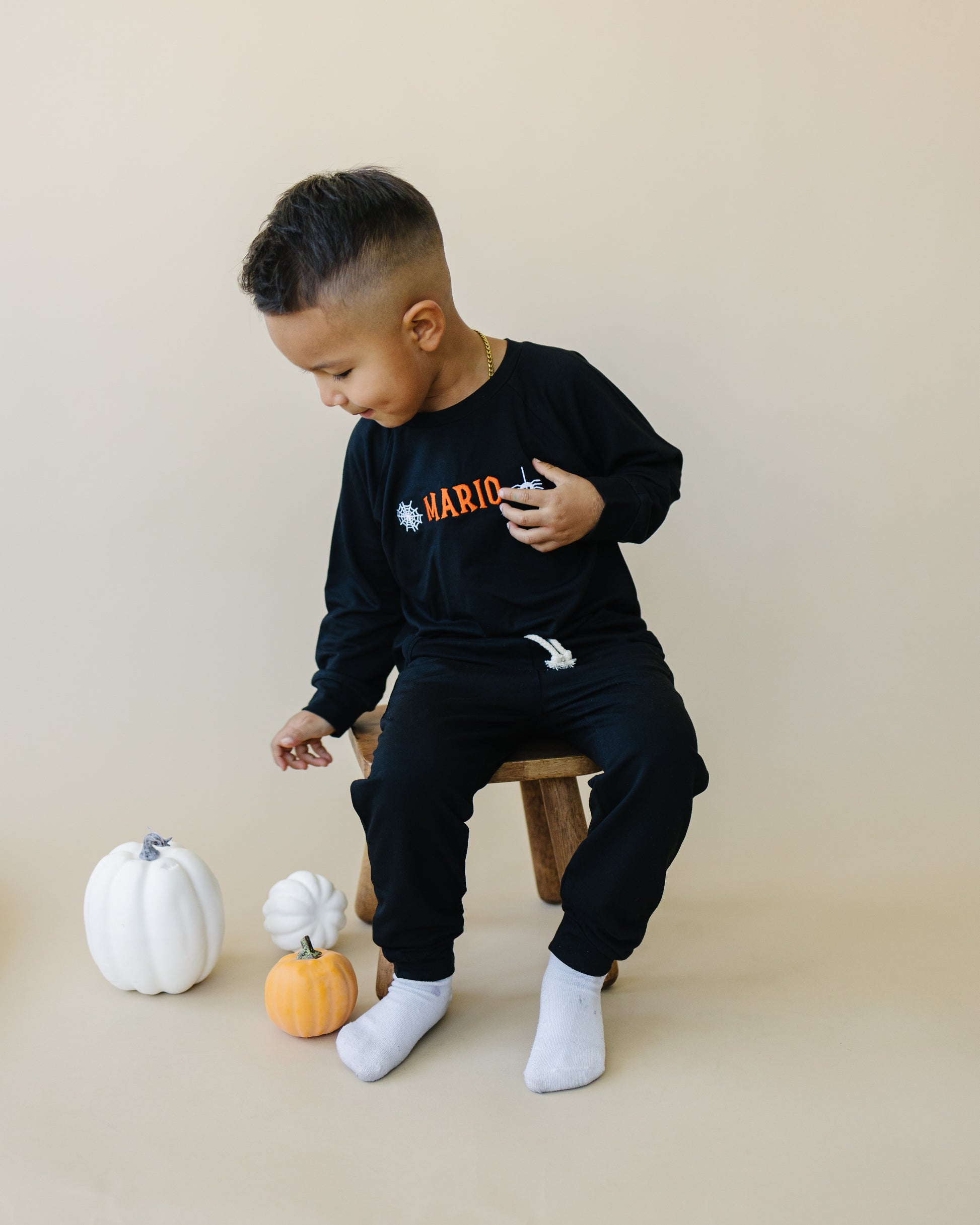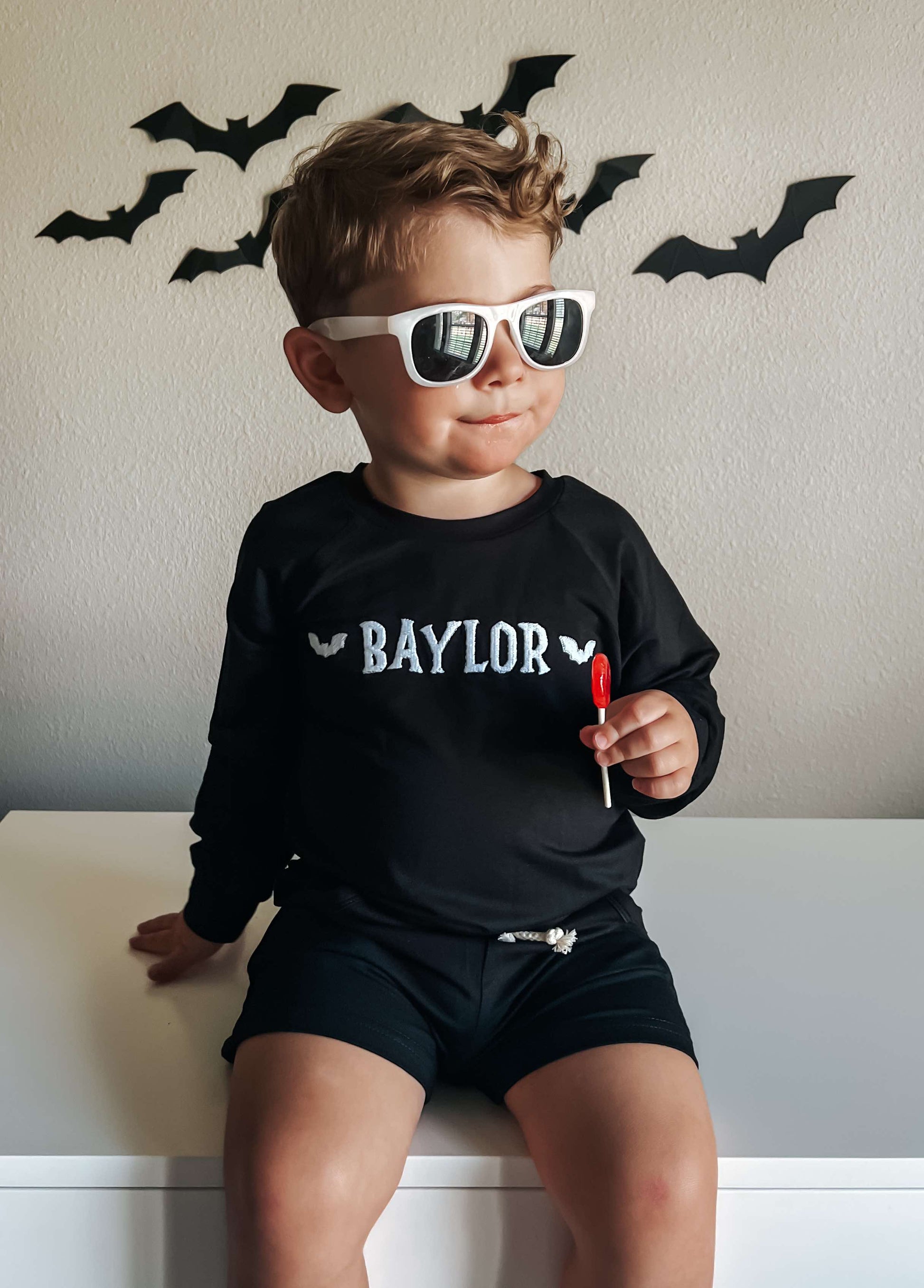 Benutzerdefinierter Halloween-Rundhalsausschnitt aus Bambusfrottee mit Stickerei