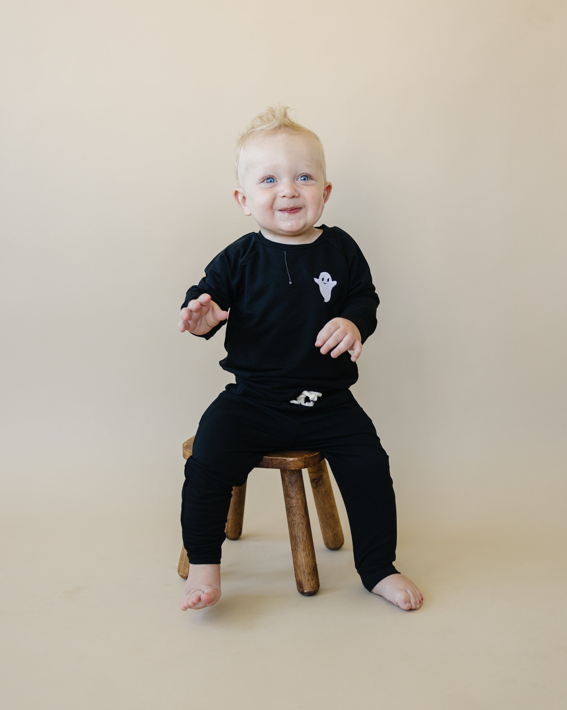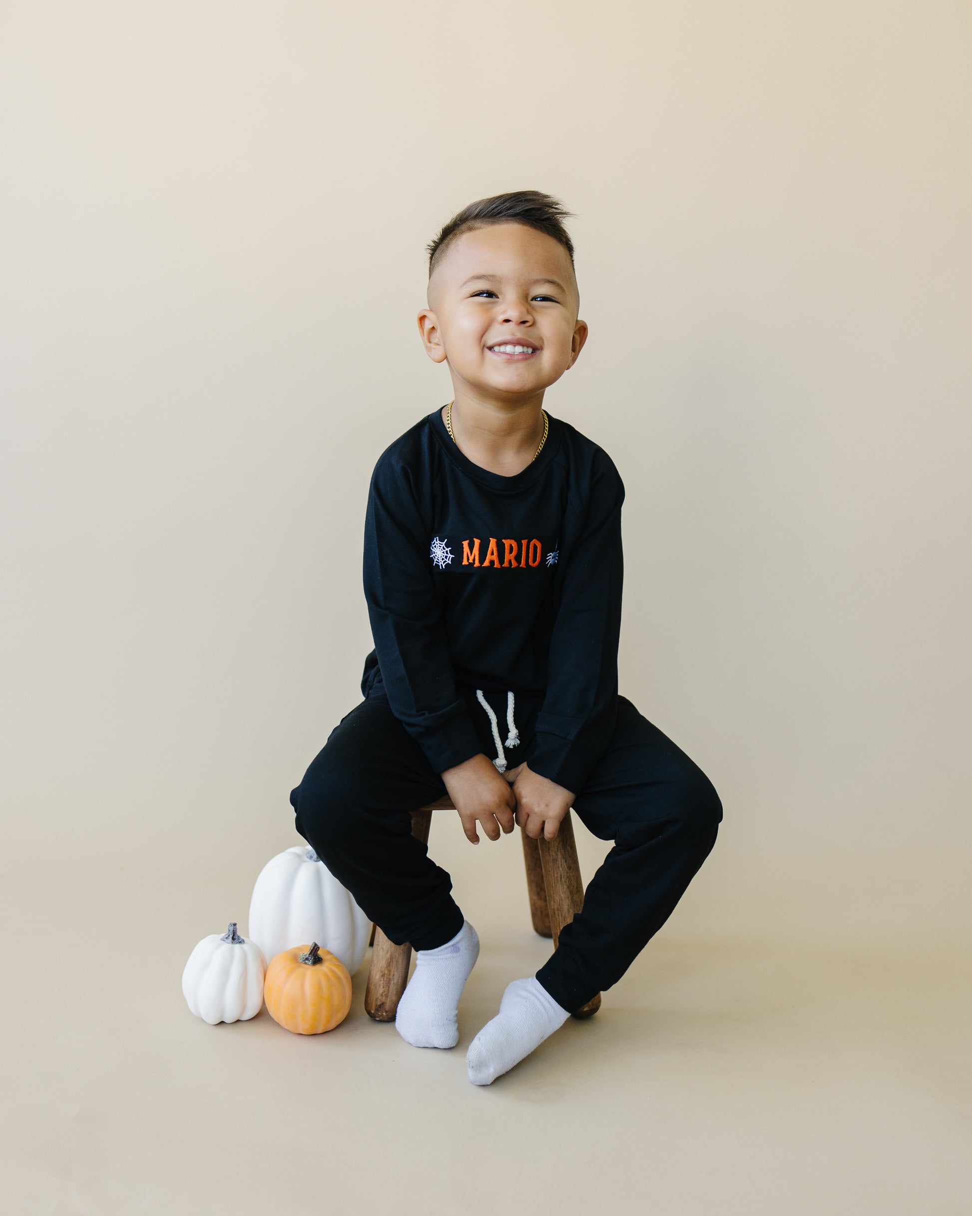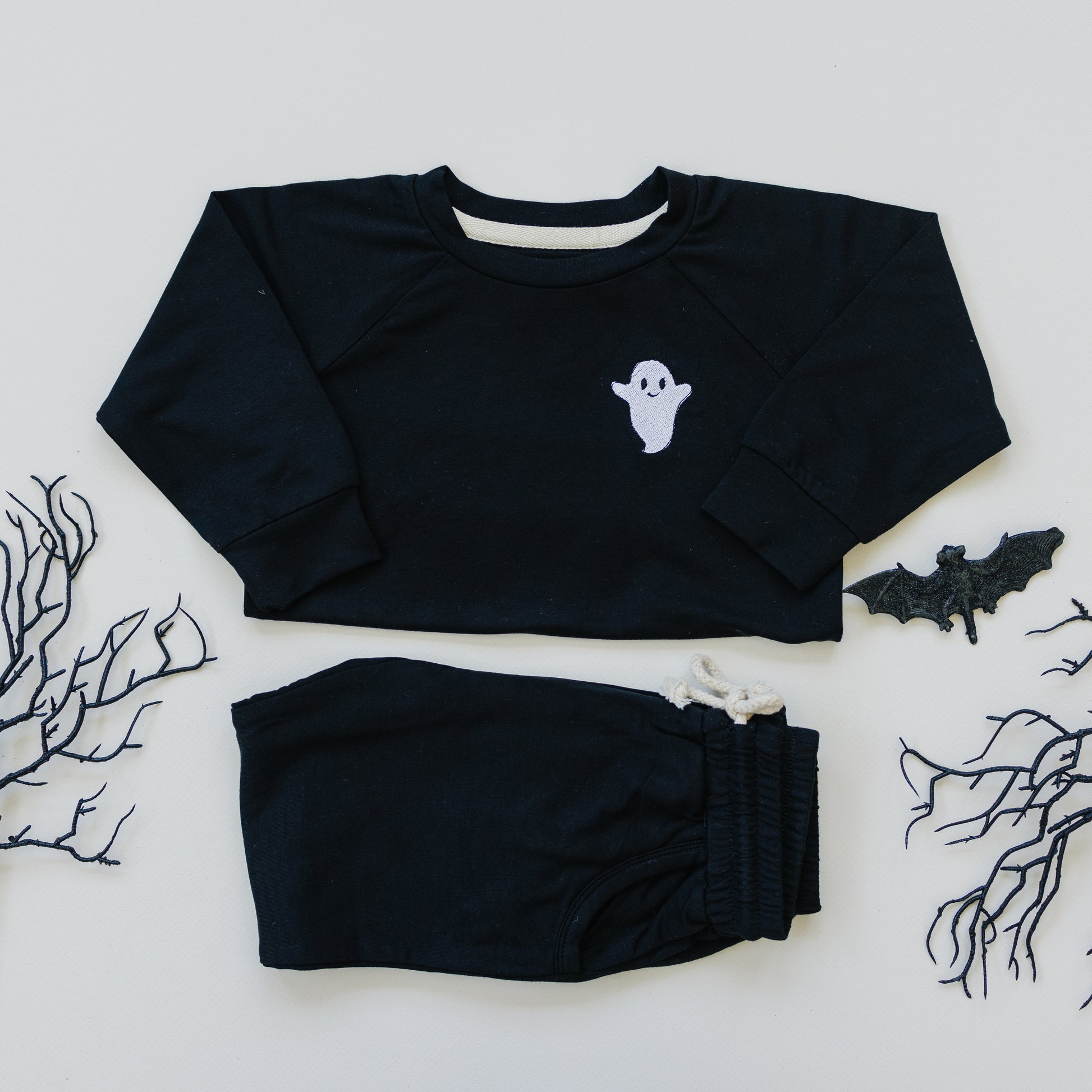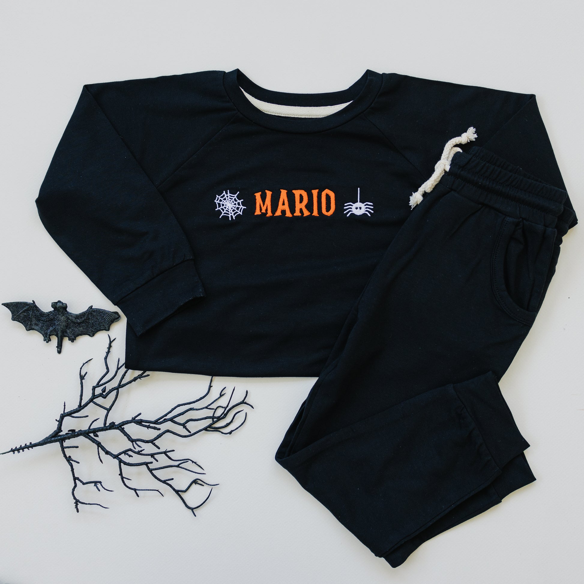 Individuelles Joggingset aus Bambusfrottee mit Halloween-Stickerei