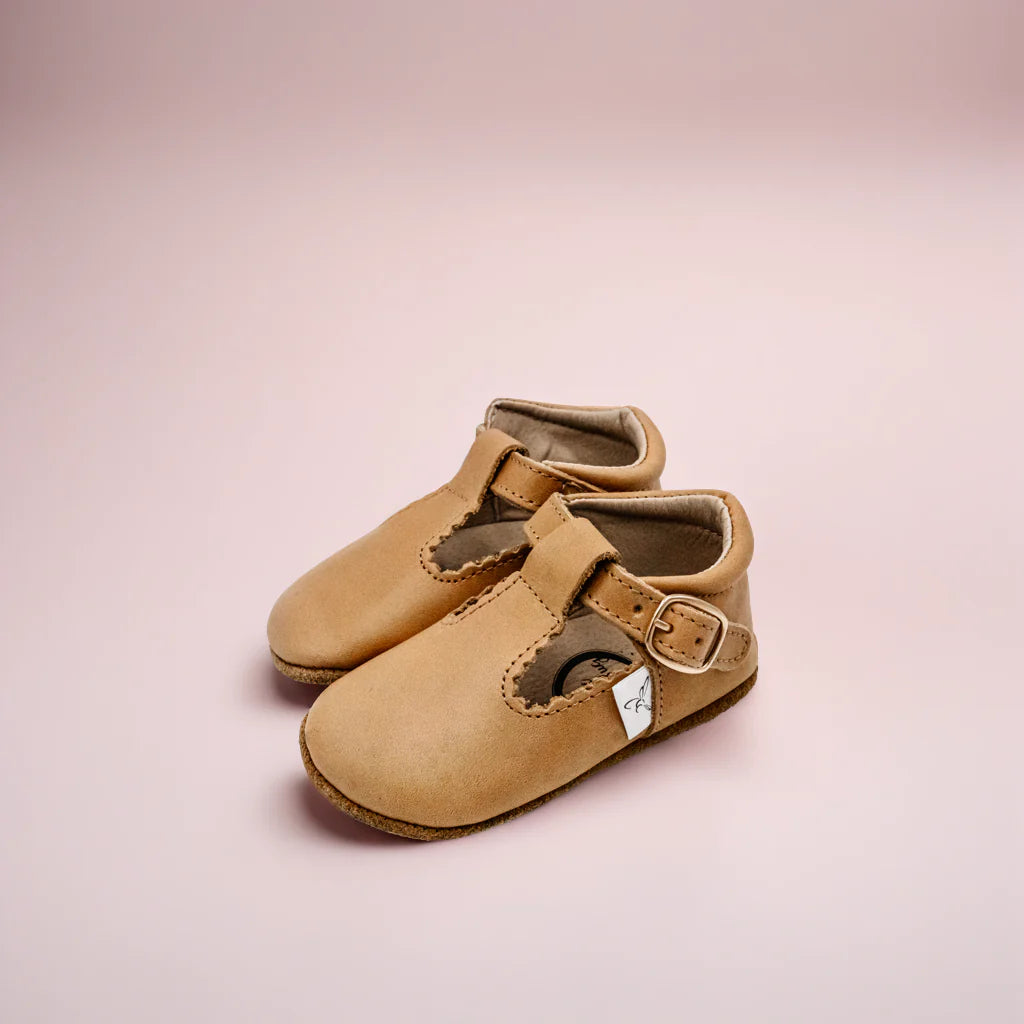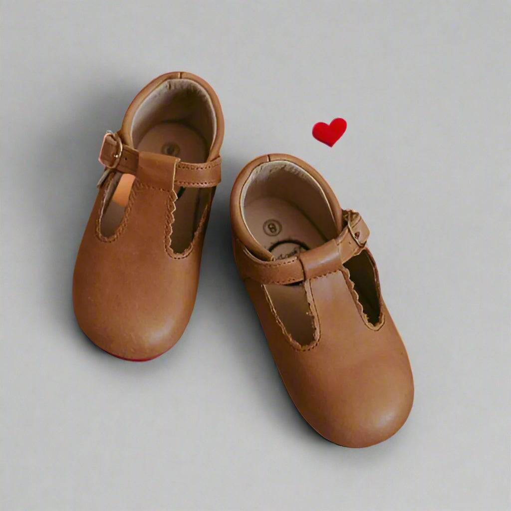 Little Love Bug Company's T Bars are the perfect blend of style and support for your child's developing feet. Made from 100% genuine leather, these scalloped shoes feature a zero drop, wide toe box, and flexible sole to encourage natural movement and growth, just like barefoot walking.