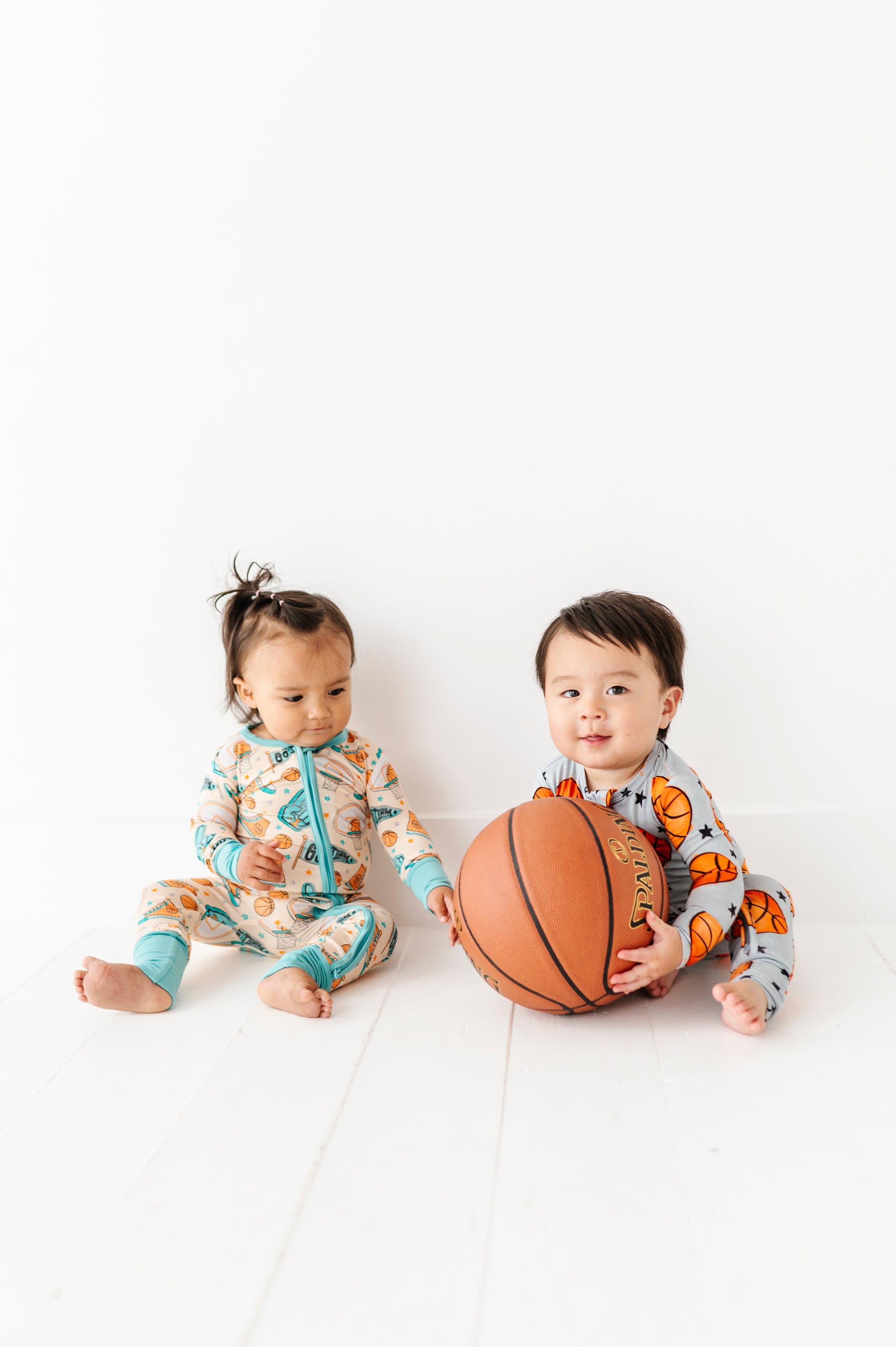 Crafted from a buttery-soft bamboo viscose blend, this romper is breathable, lightweight, and gentle on sensitive skin. The playful game-day print features basketballs, hoops, foam fingers, and sneakers for a sporty look that feels fun without sacrificing comfort.