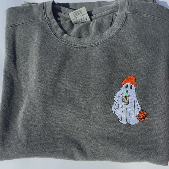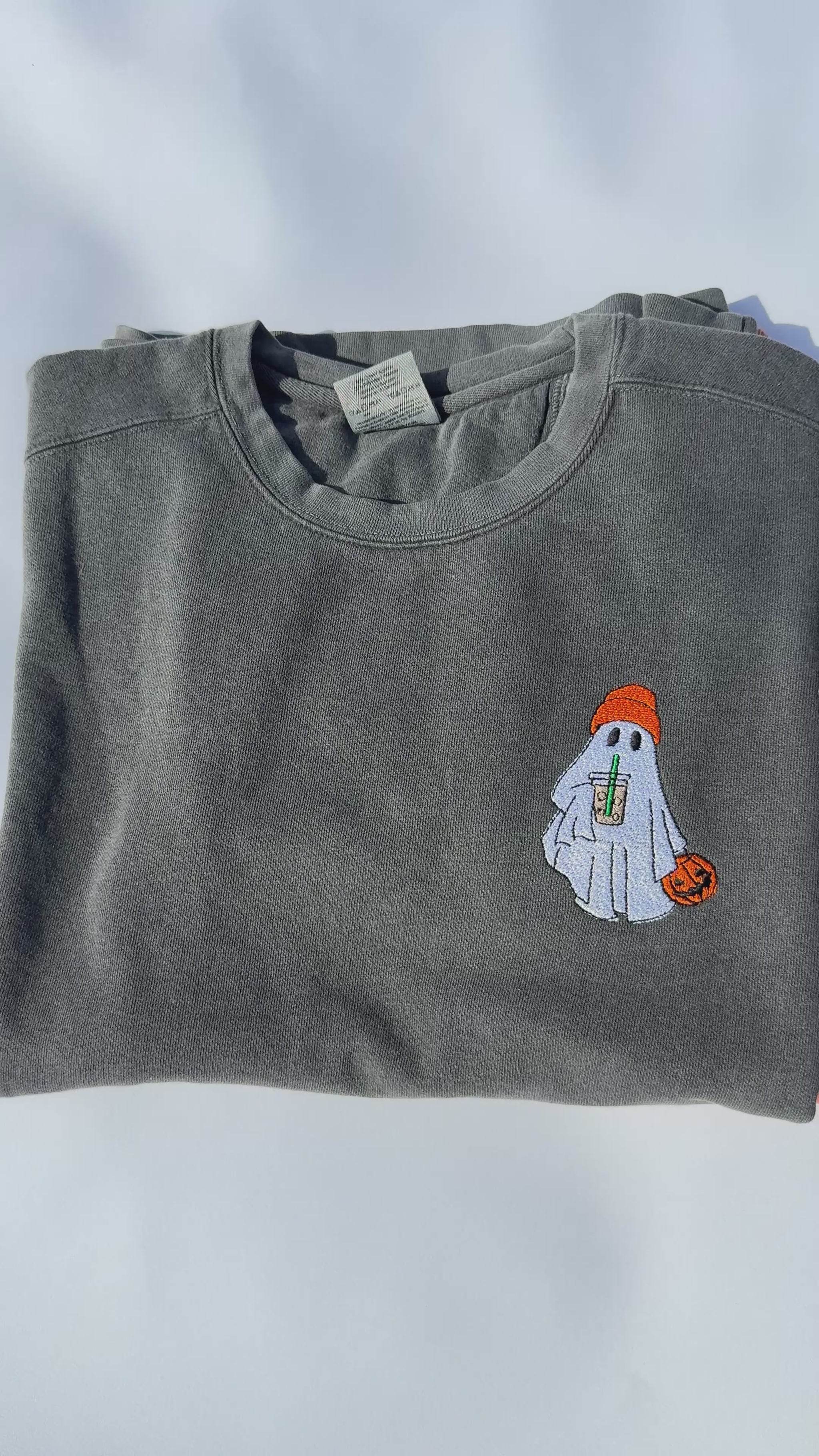 Adult Embroidered Iced Coffee Ghost Comfort Colors Crewneck Sweatshirt - more colors