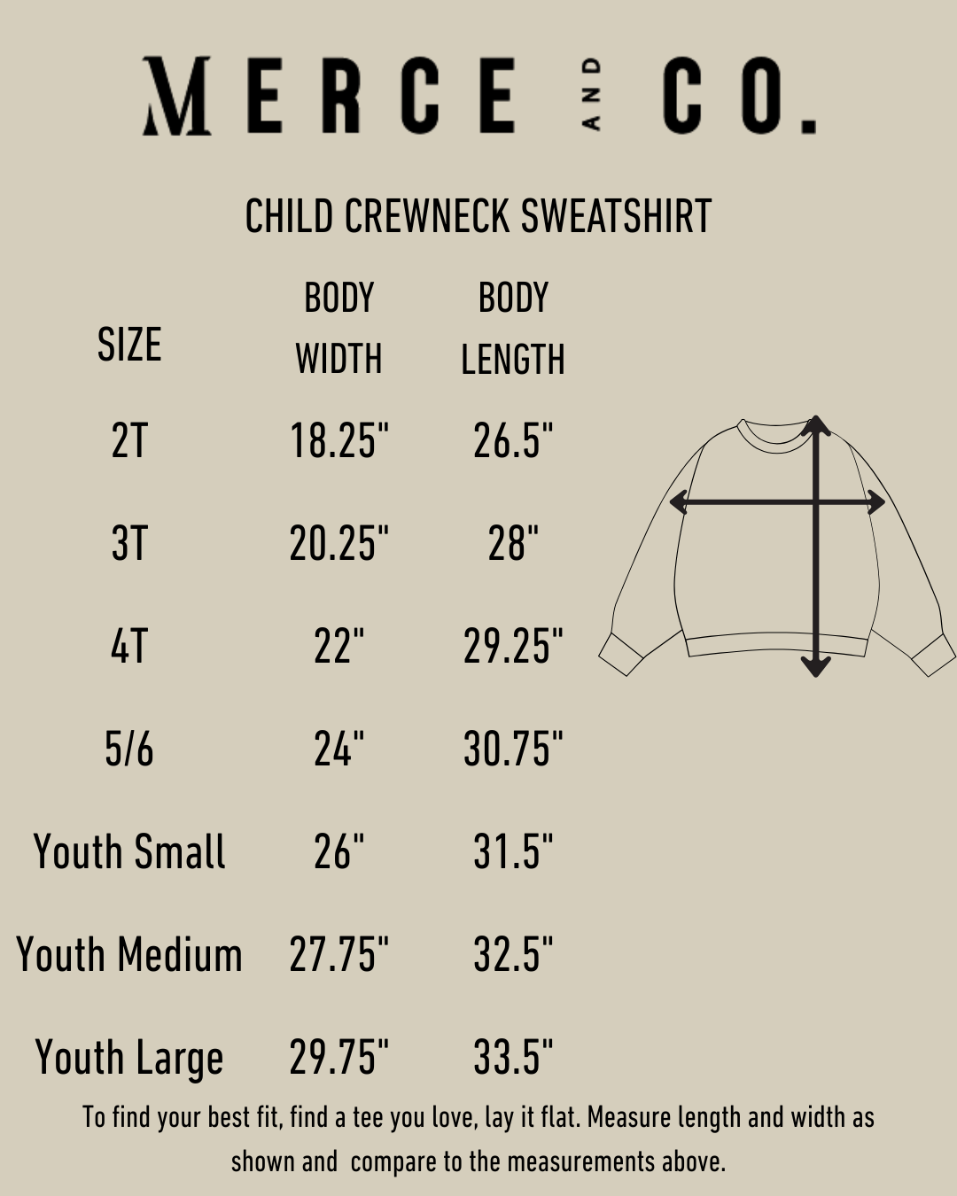•SIZING: For the best possible fit, we recommend using the measurements in the chart listed. We suggest ordering the same size sweatshirt your child normally wears. Unisex fit.