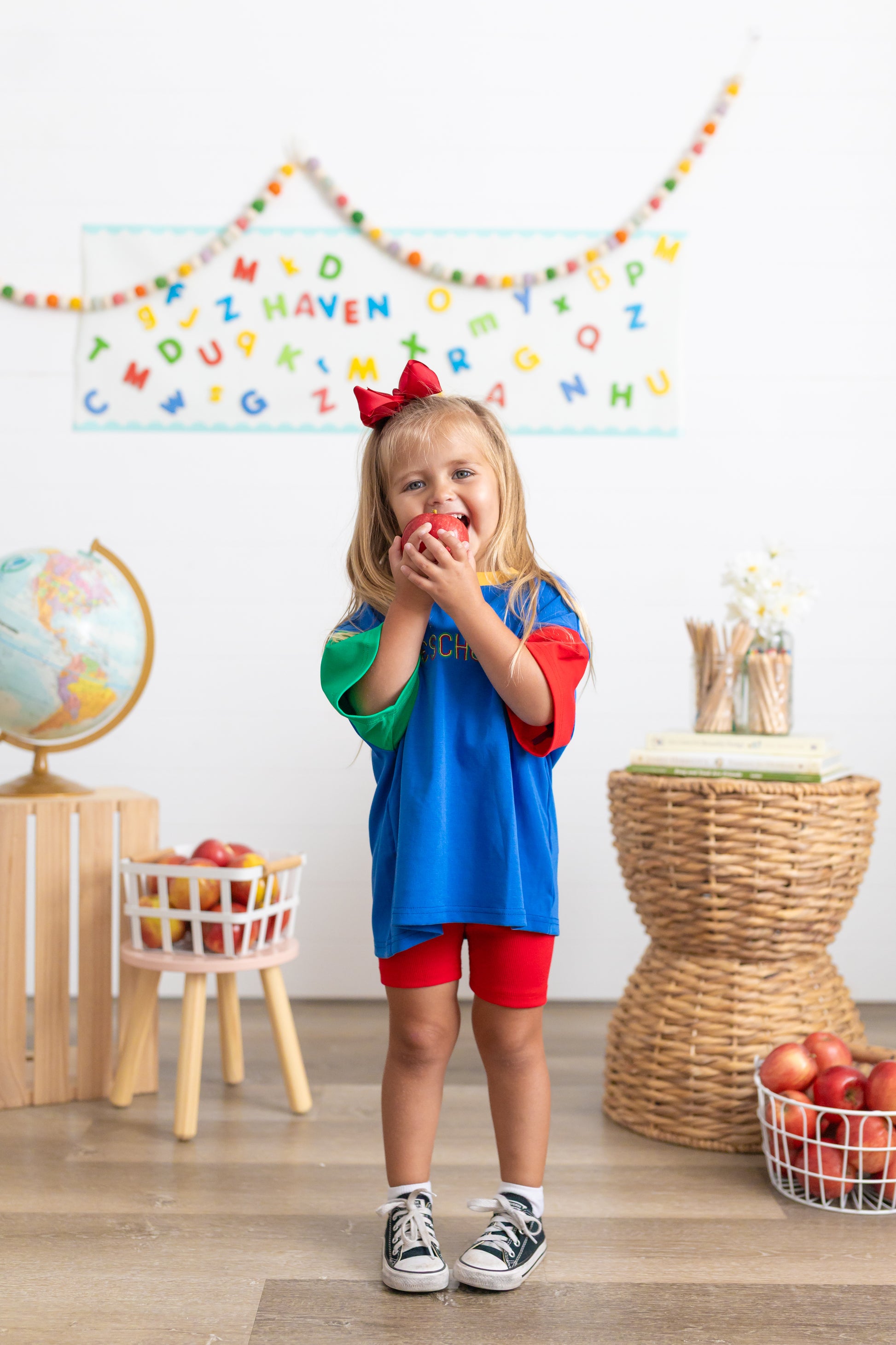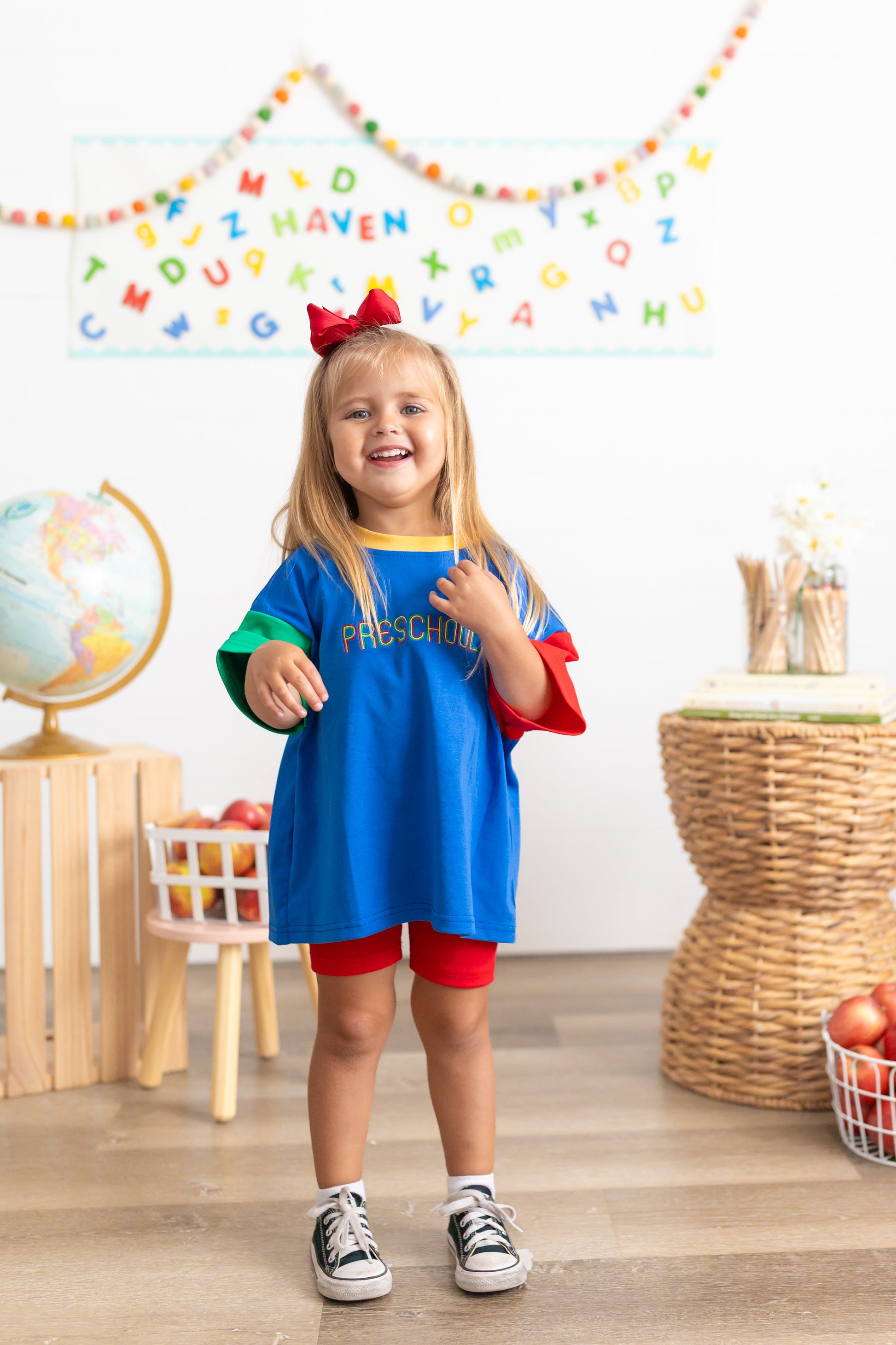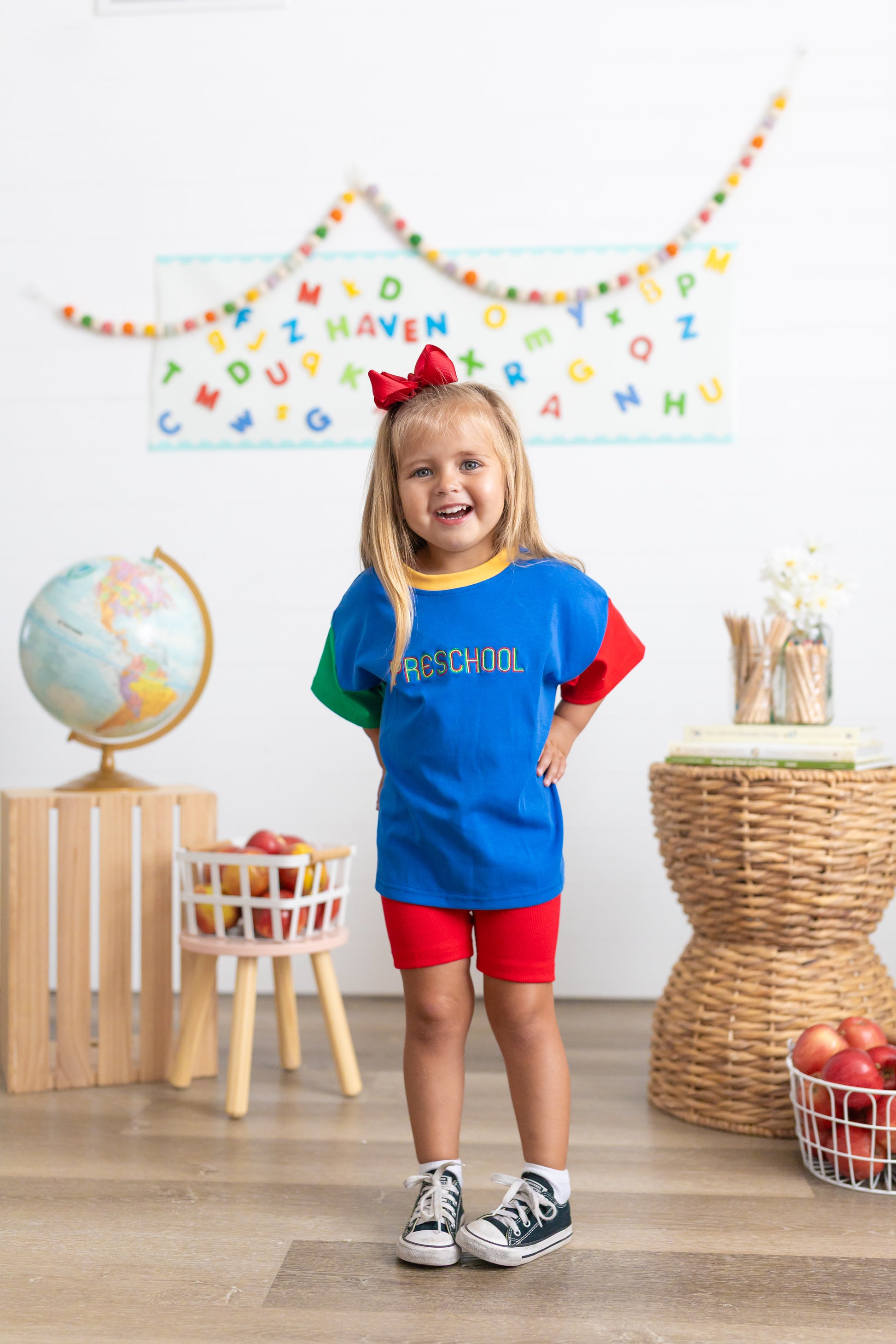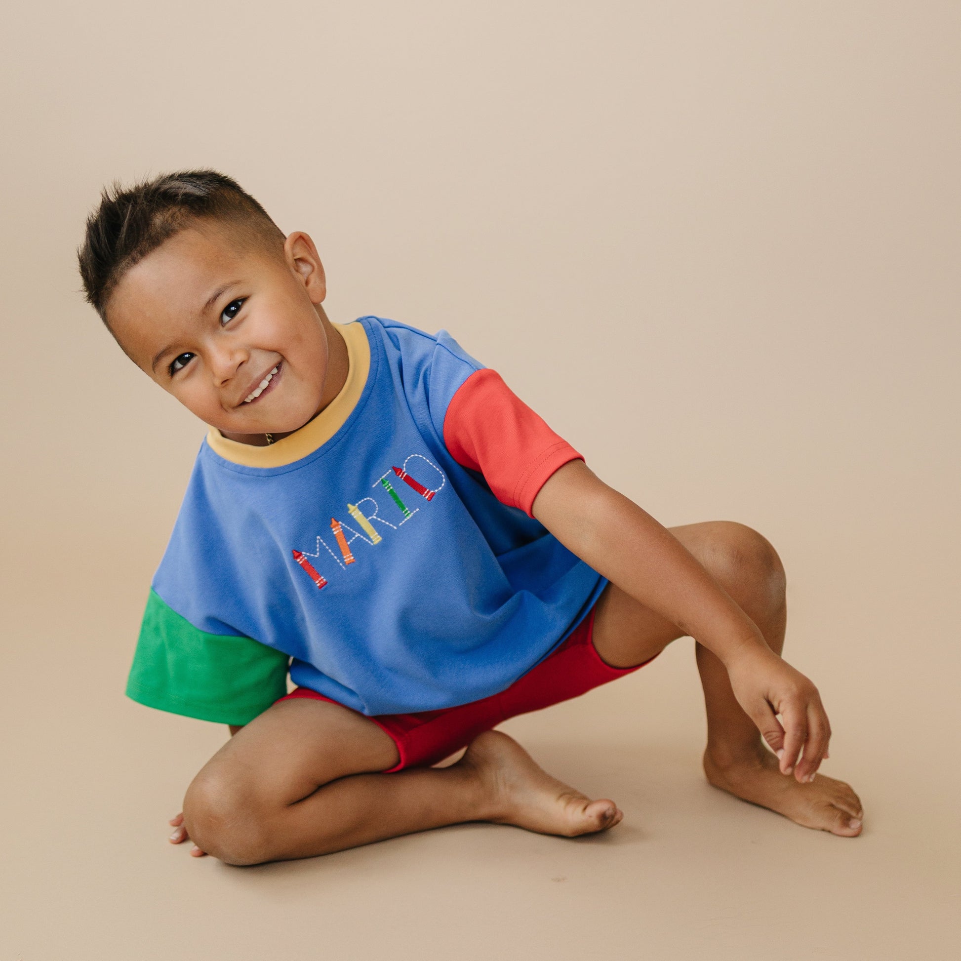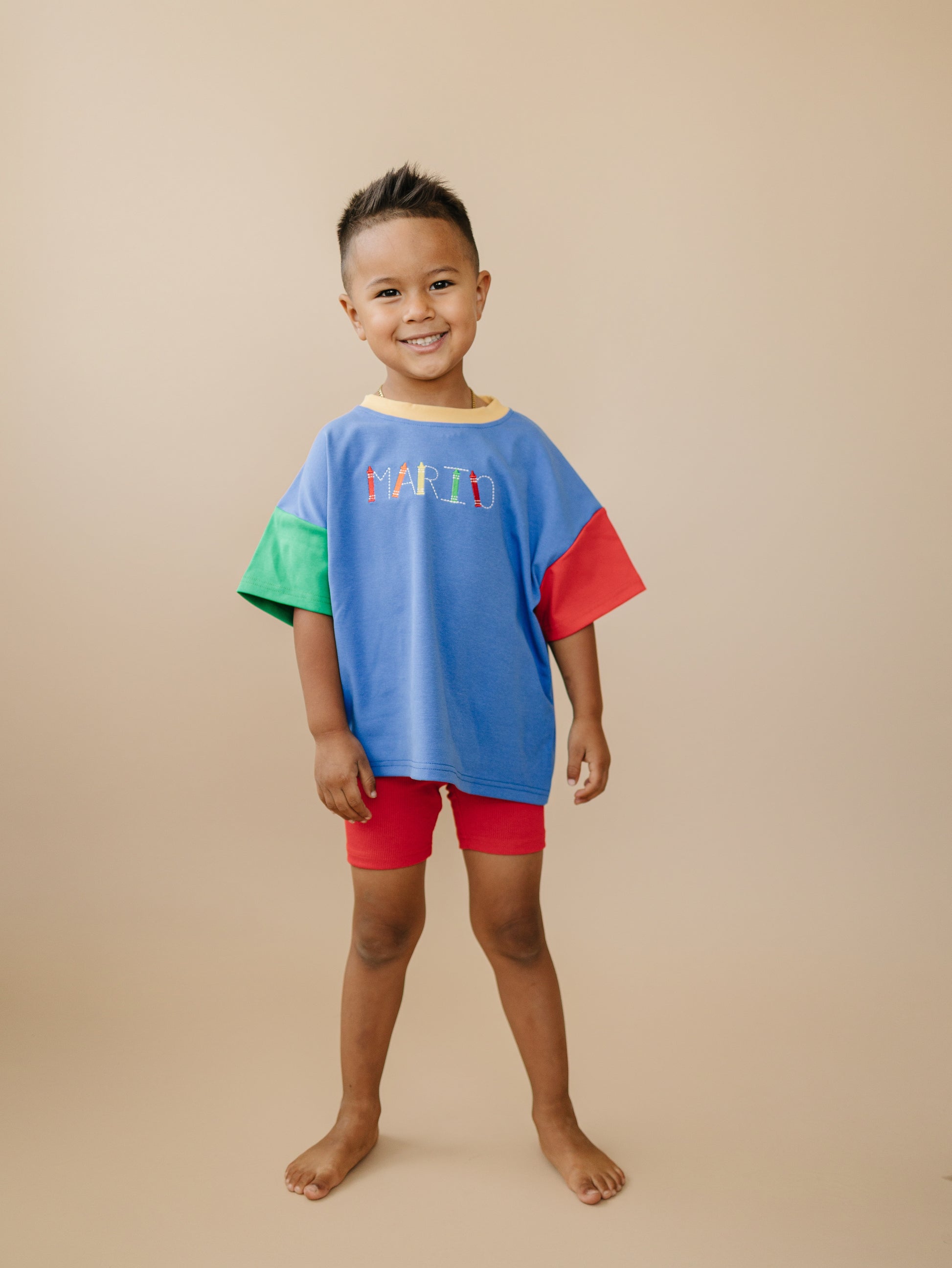 Custom Embroidered 90s Colorblock T-Shirt Romper or Oversized Tee Set - choice of bottoms
