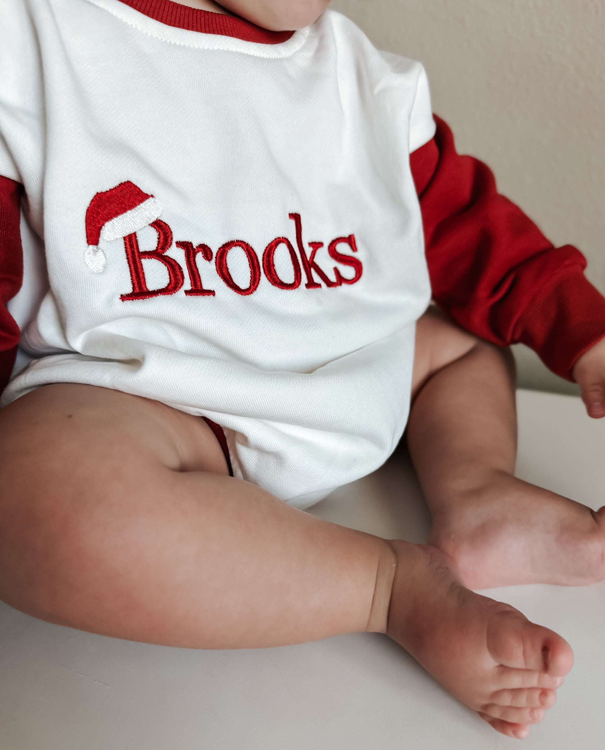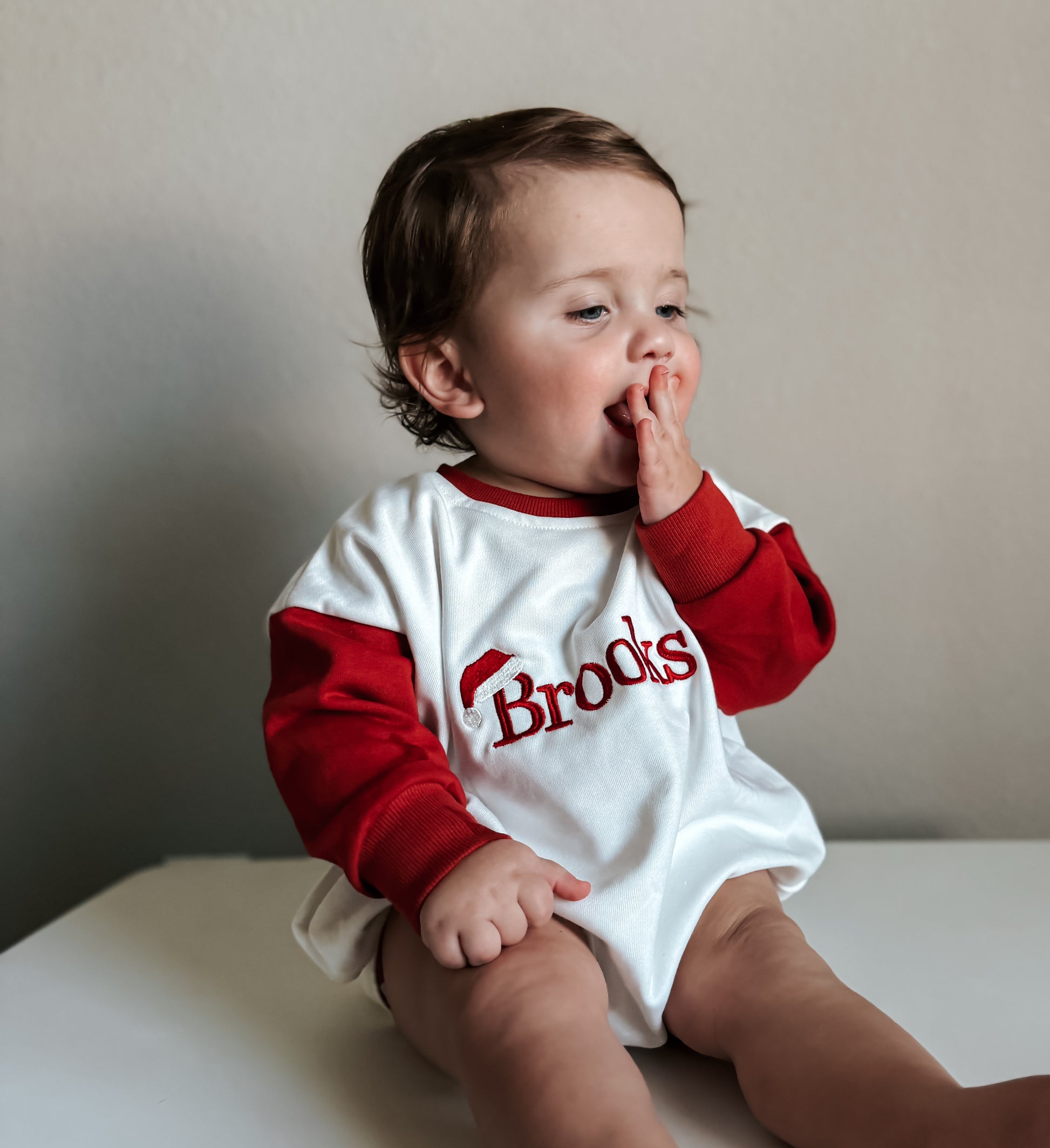 Custom Embroidered Christmas Colorblock Sweatshirt or Romper - Santa Hat