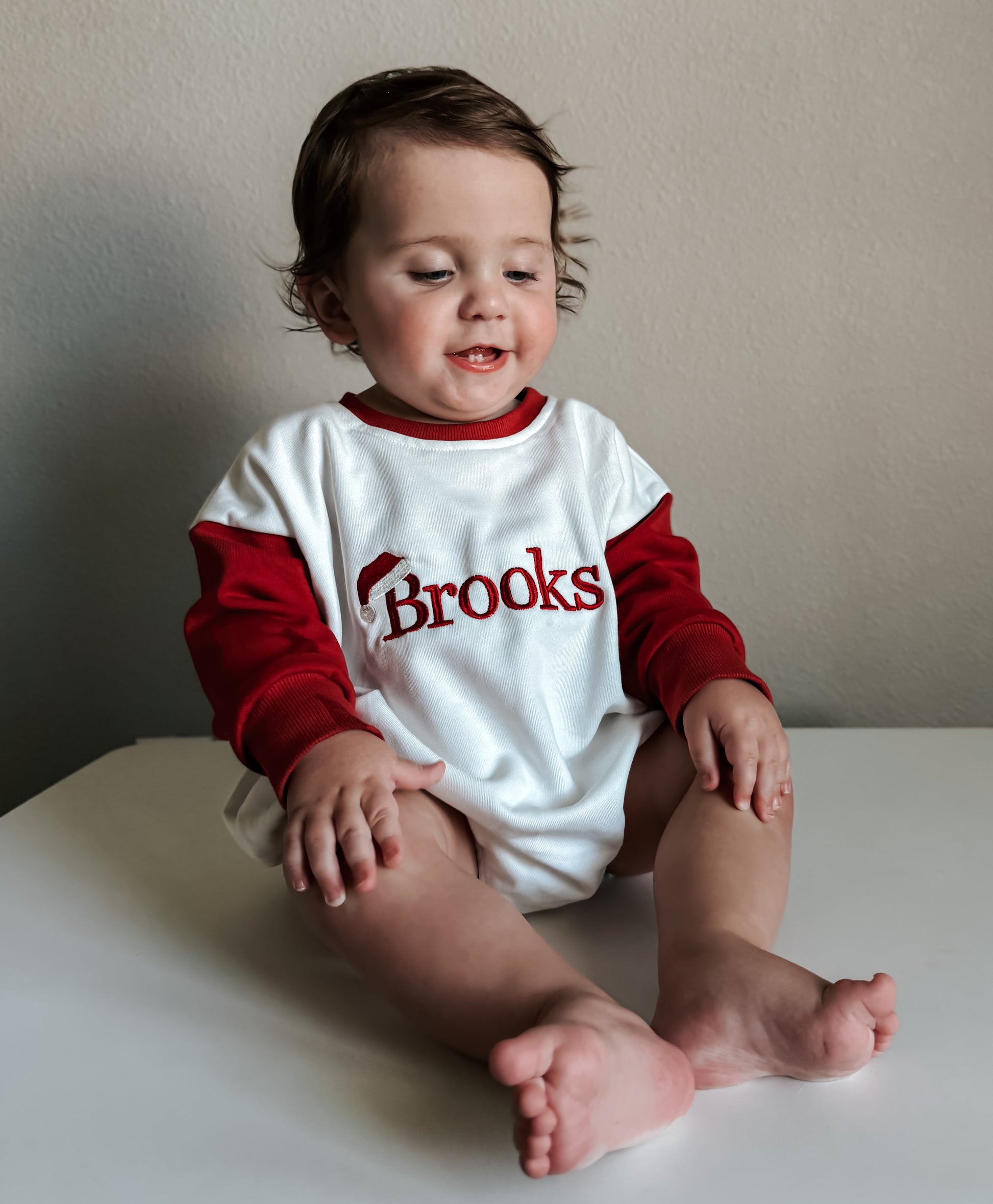 Make the holidays extra special with a personalized Custom Embroidered Christmas Colorblock Sweatshirt or Romper! Crafted from lightweight French terry, this cozy crewneck offers the perfect balance of comfort and style, fabric is 83% cotton/17% polyester. Customize it with your choice of name, initials, or a festive phrase like "My First Christmas" or "Merry."