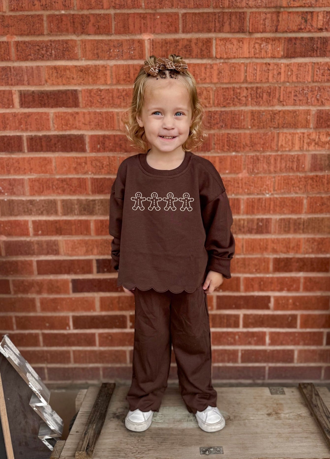 Custom Embroidered Christmas Scalloped Set - Gingerbread