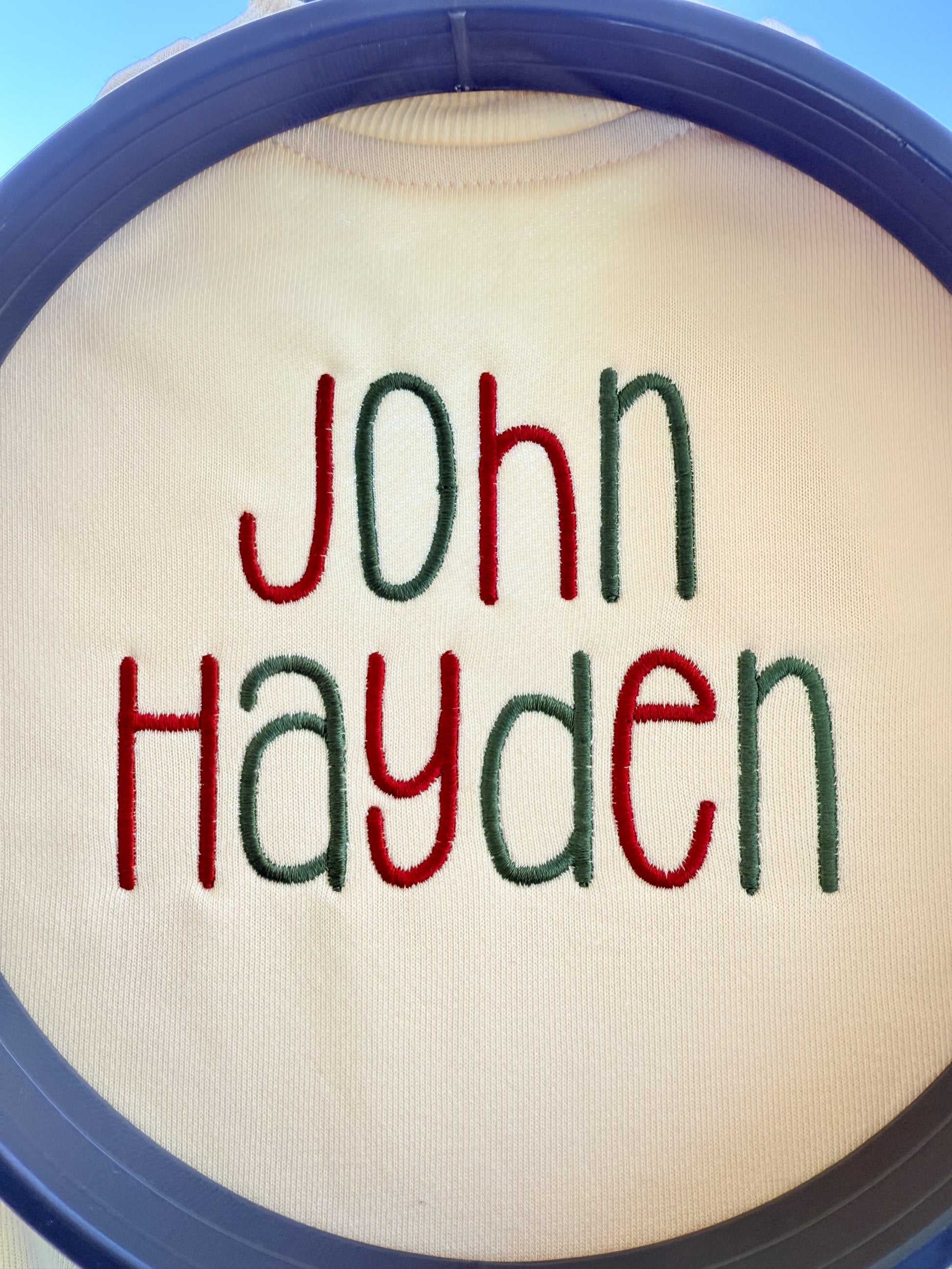 Make the holidays extra special with a personalized Custom Embroidered Christmas Sweatshirt or Romper! Crafted from lightweight French terry, this cozy crewneck offers the perfect balance of comfort and style. Customize it with your choice of name, initials, or a festive phrase like "My First Christmas" or "Merry."