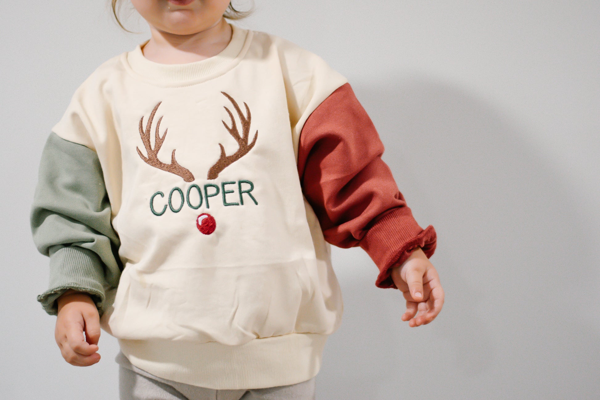 Make the holidays extra special with a personalized Custom Embroidered Christmas Colorblock Sweatshirt! Crafted from lightweight French terry, this cozy crewneck offers the perfect balance of comfort and style. Customize it with your choice of name, initials, or a festive phrase like "My First Christmas" or "Merry."