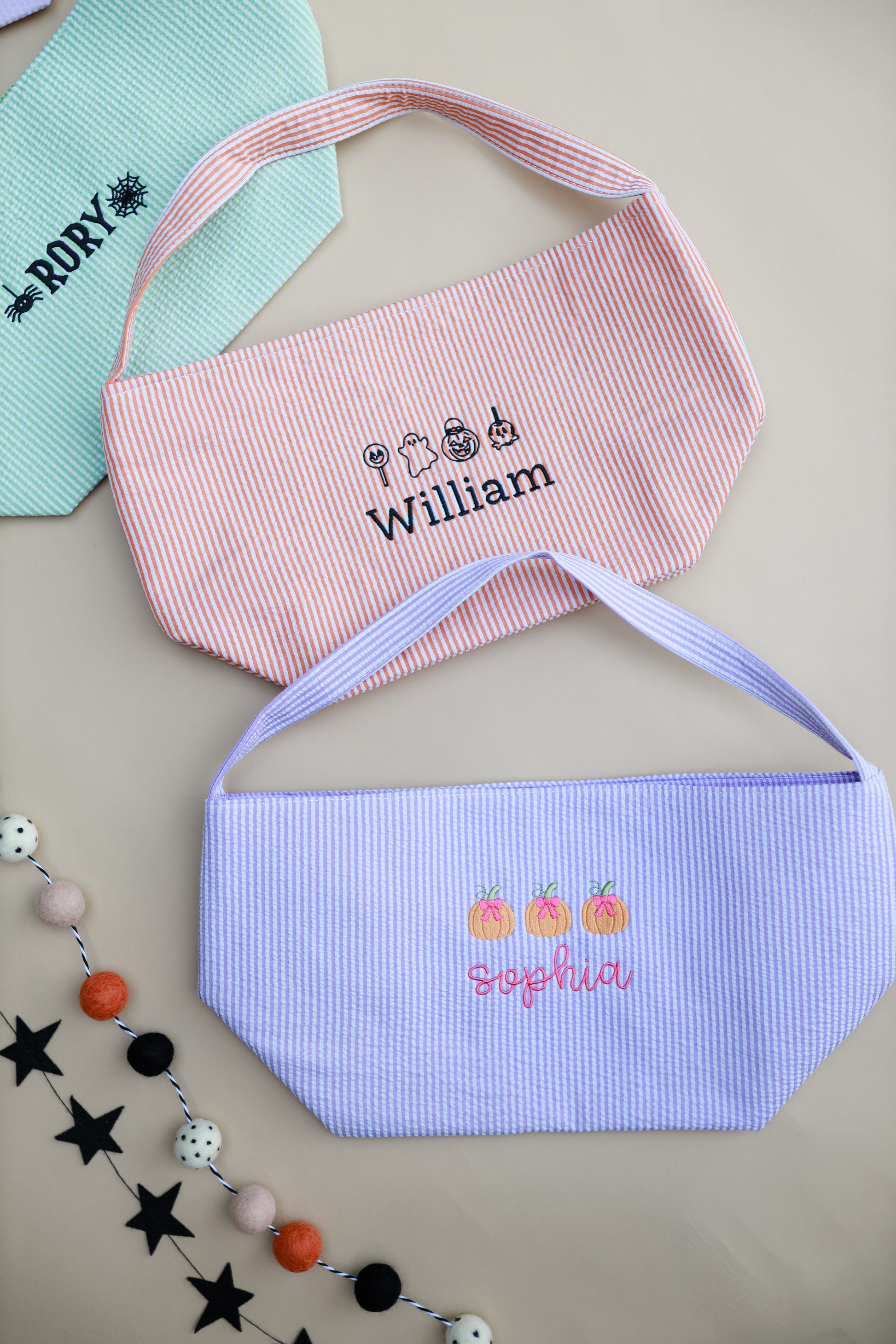 Make your little one's spooky season even more special with our Custom Halloween Basket, personalized just for them! This basket brings both festive charm and trendy style, perfect for Boo Baskets and trick or treating. Featuring a deep pocket for all of their Halloween goodies. Basket measures approximately 15" wide x 9.5" deep x 8" tall (minus handles).Β