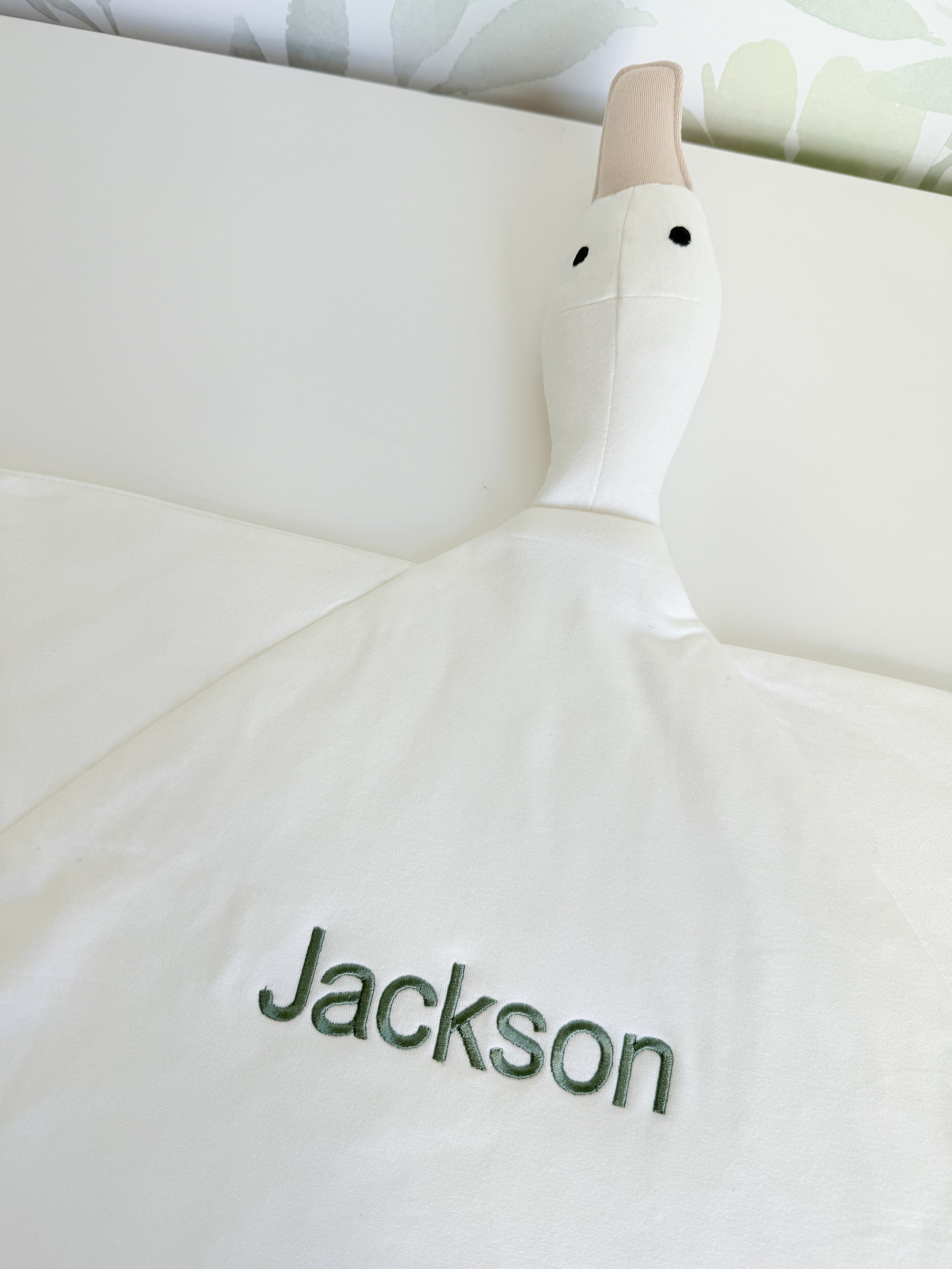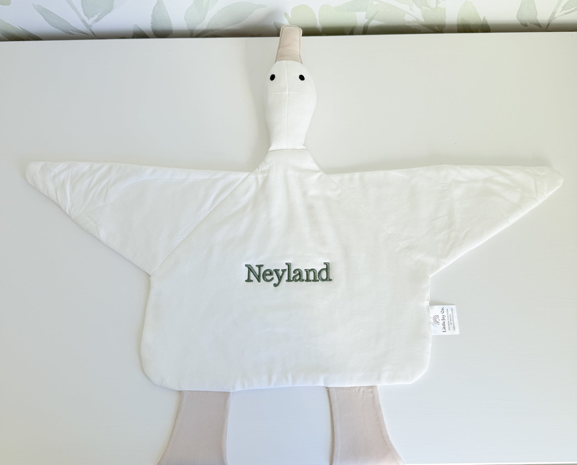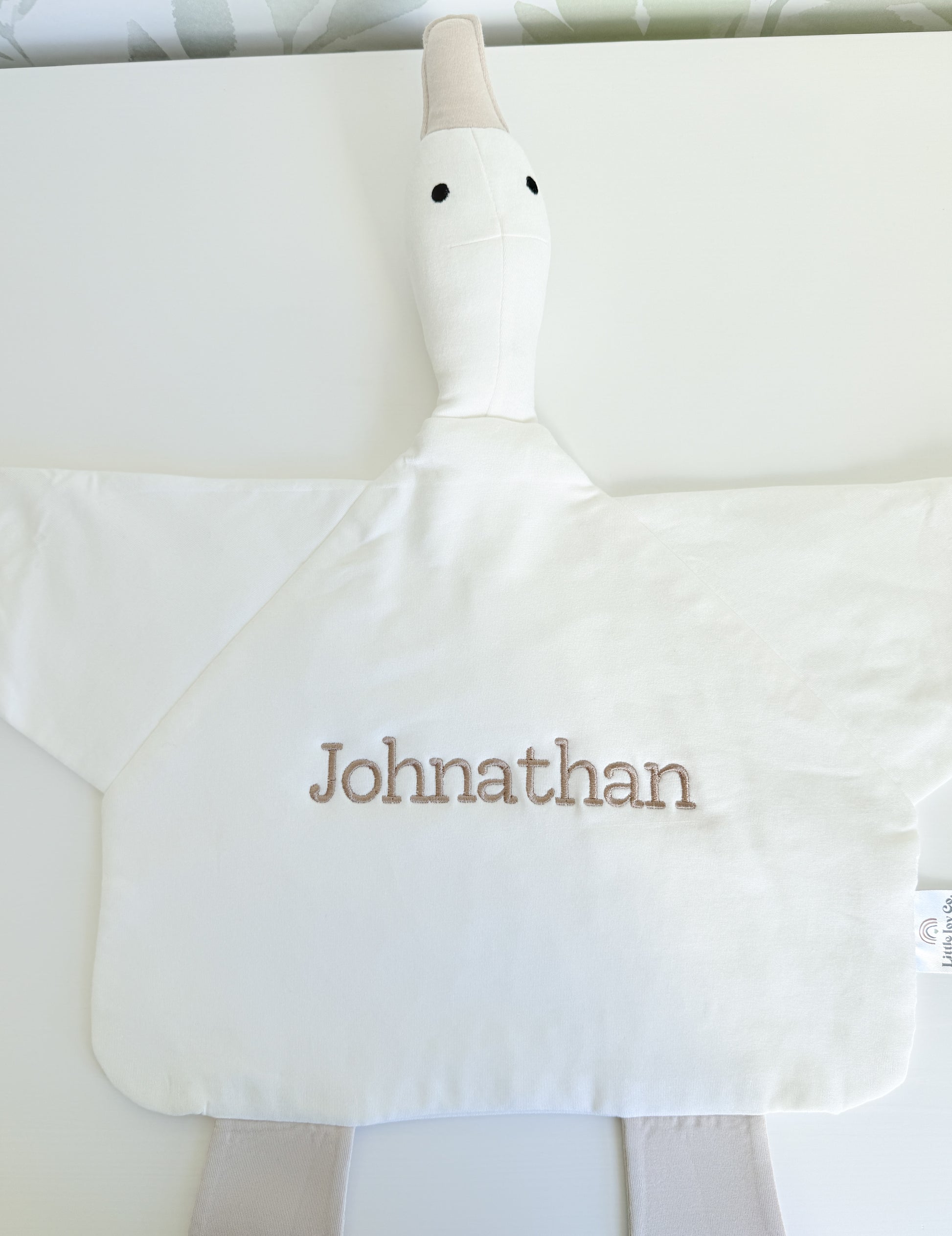 Introducing our Modal Goose Lovey – a soft, cuddly, and safe companion for your little one. This adorable lovey features a goose design and is made from a blend of 92% rayon from modal and 8% spandex. The head and body is filled with polyester for extra plushness.
