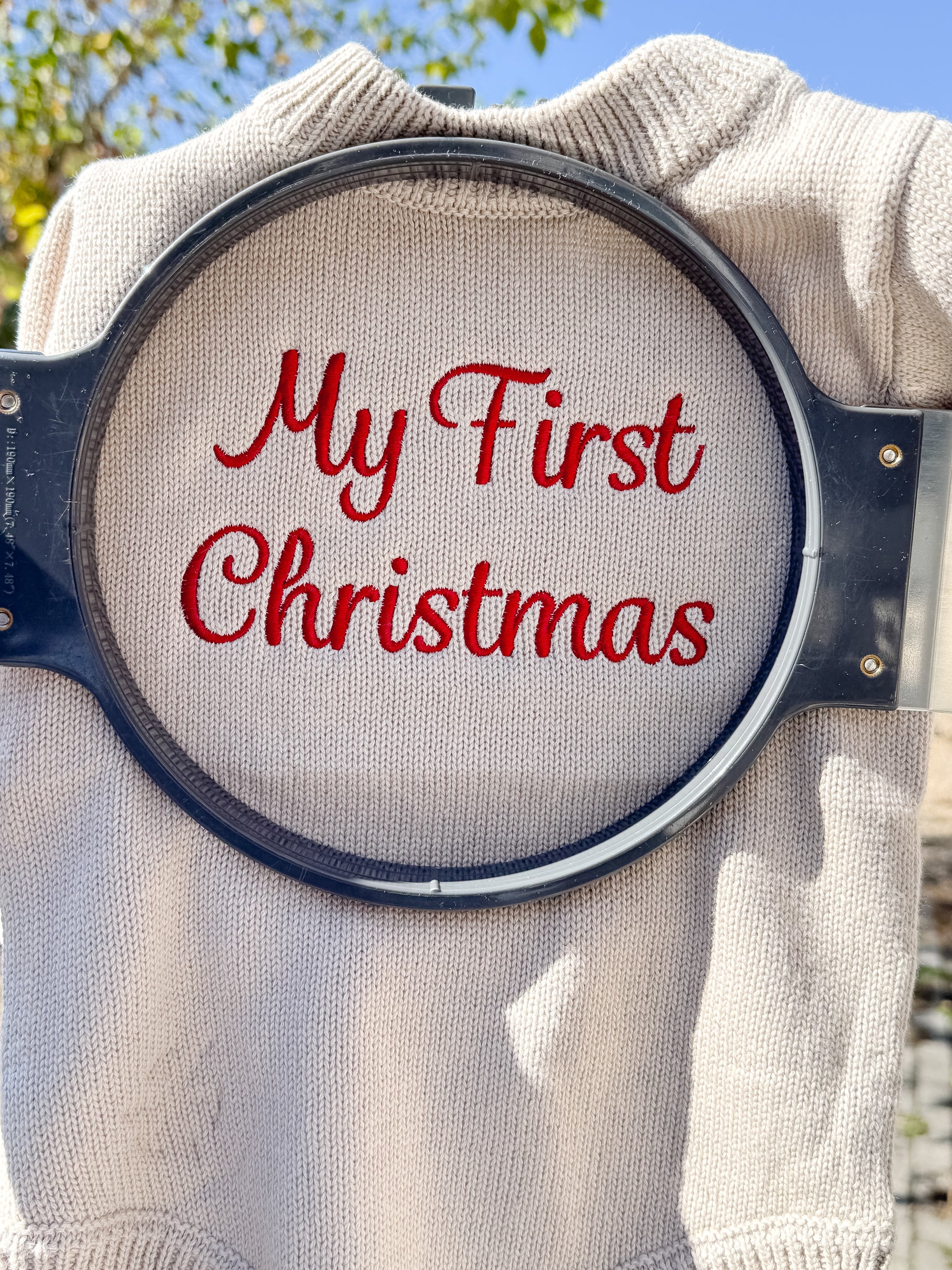 - Embroider one or two names, or a short phrase ("I'm here," "My First Christmas" etc)