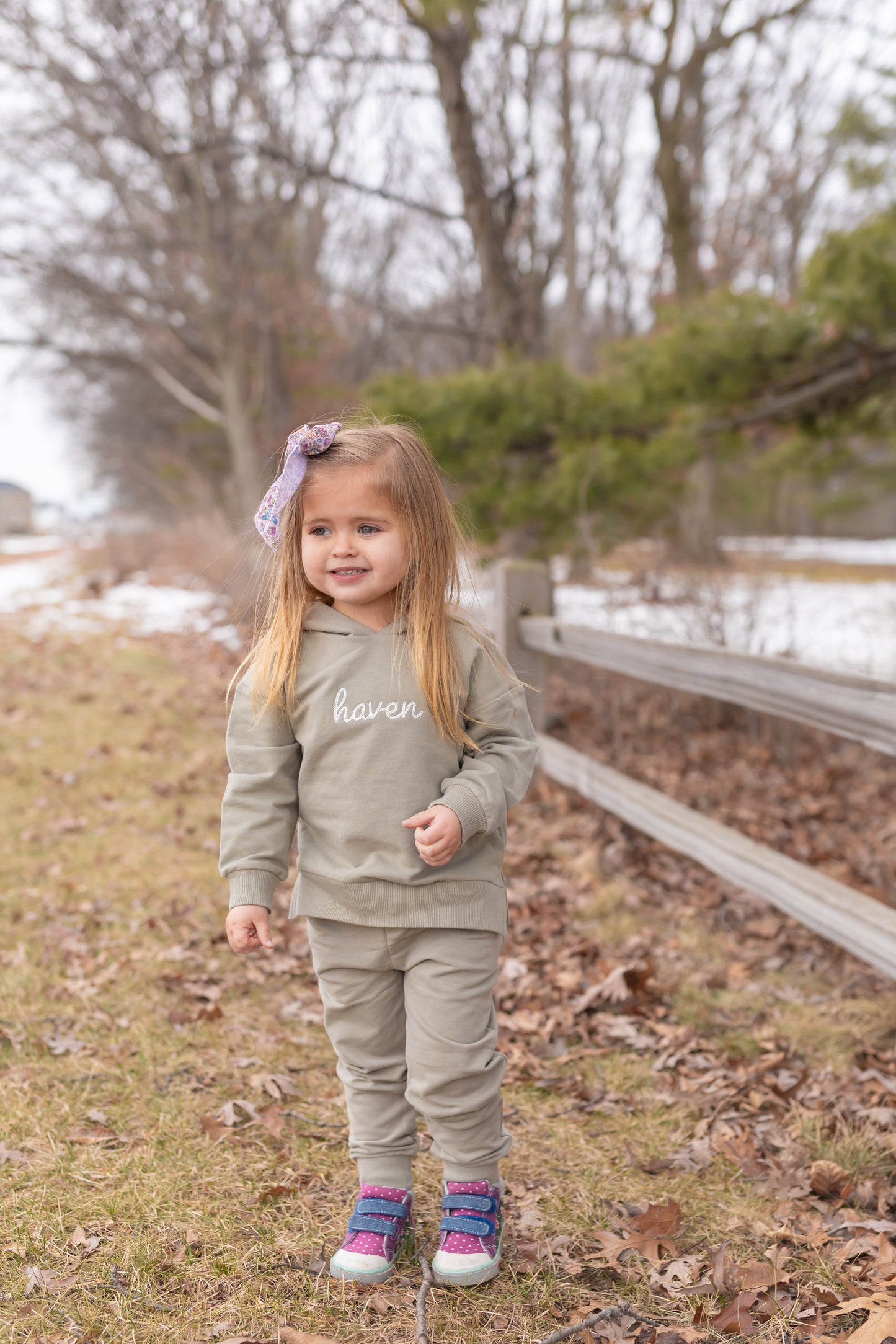 Custom Embroidered Organic Cotton Hoodie Jogger Set - Sage