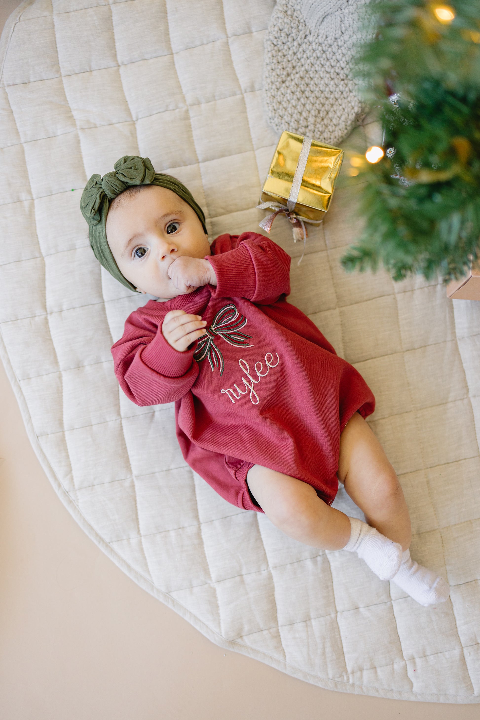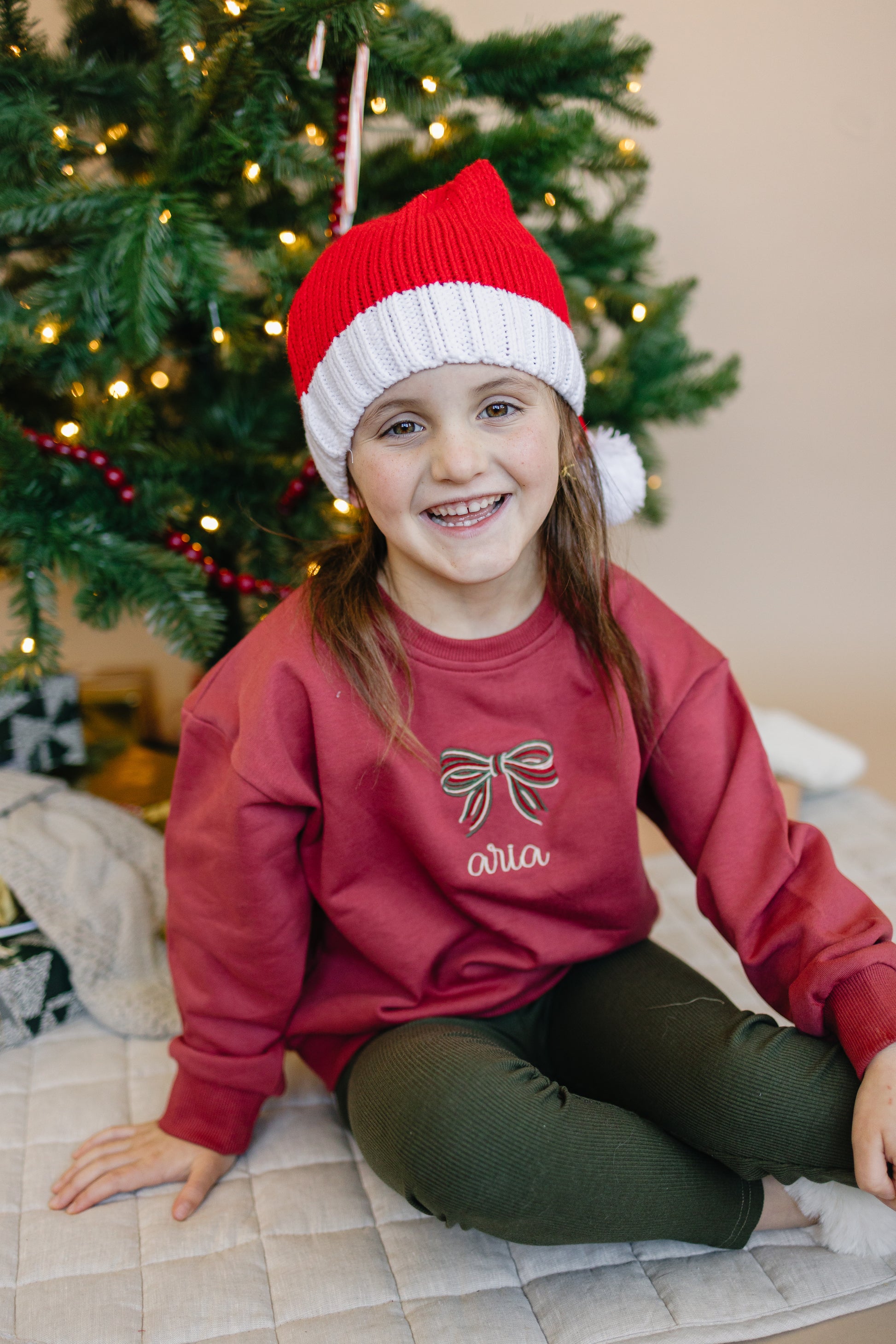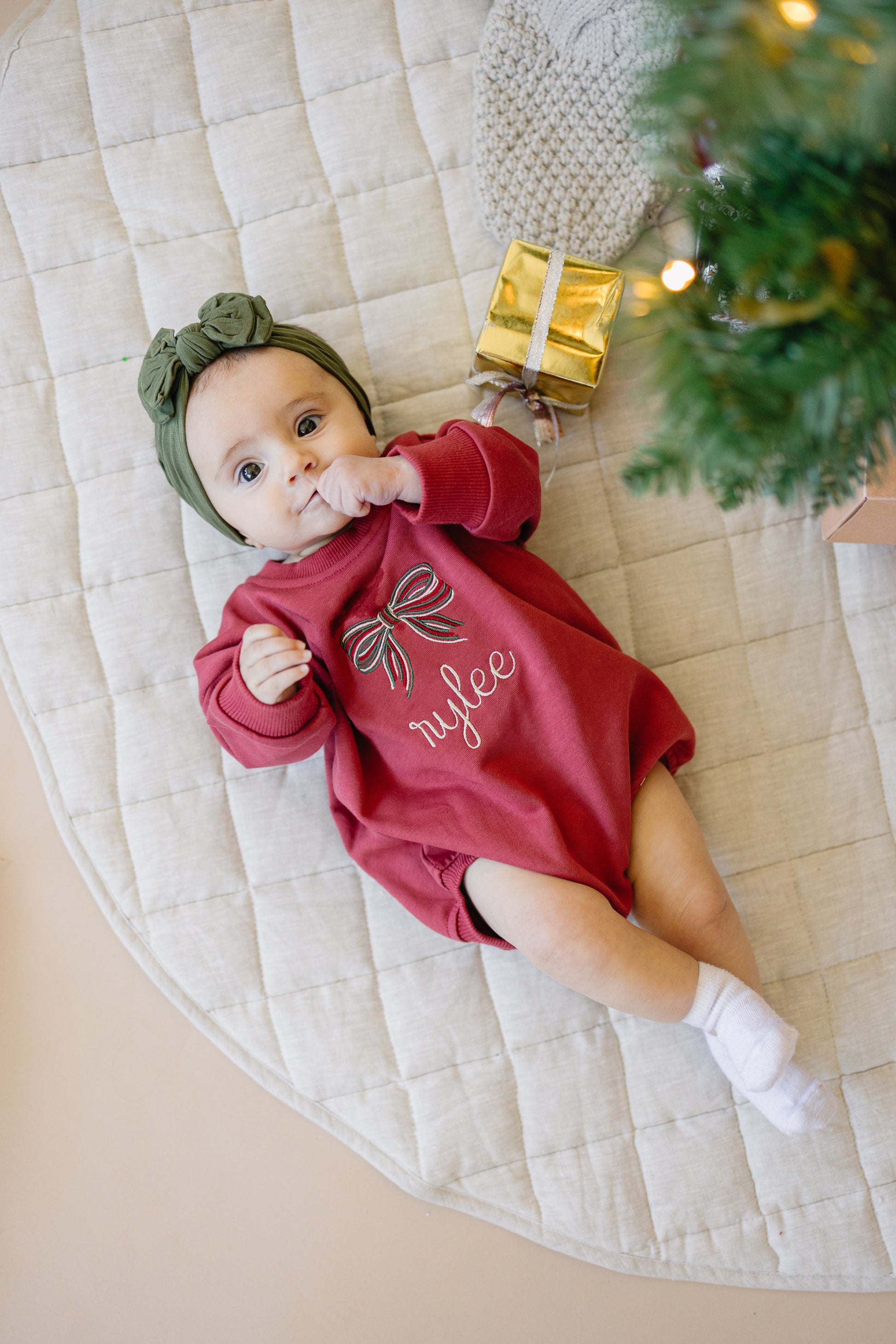 Custom Embroidered Red Sweatshirt or Romper - Christmas Bow