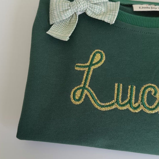Custom Embroidered St. Patrick's Day Sweatshirt or Sweatshirt Romper - Gold Sparkle