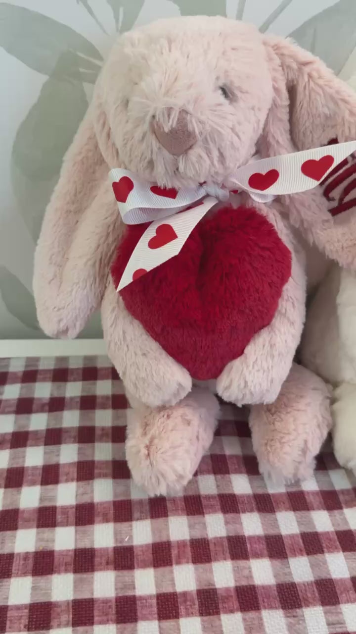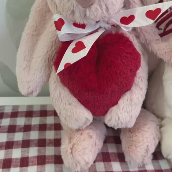 Make your little one's Valentine's season even more special with our Custom Valentine's Plush Bunny, personalized just for them! This Bunny brings both festive charm and trendy style, perfect for Valentine's gifts or a cuddly keepsake. Featuring a cute heart and bow, makes its both festive and cuddly.