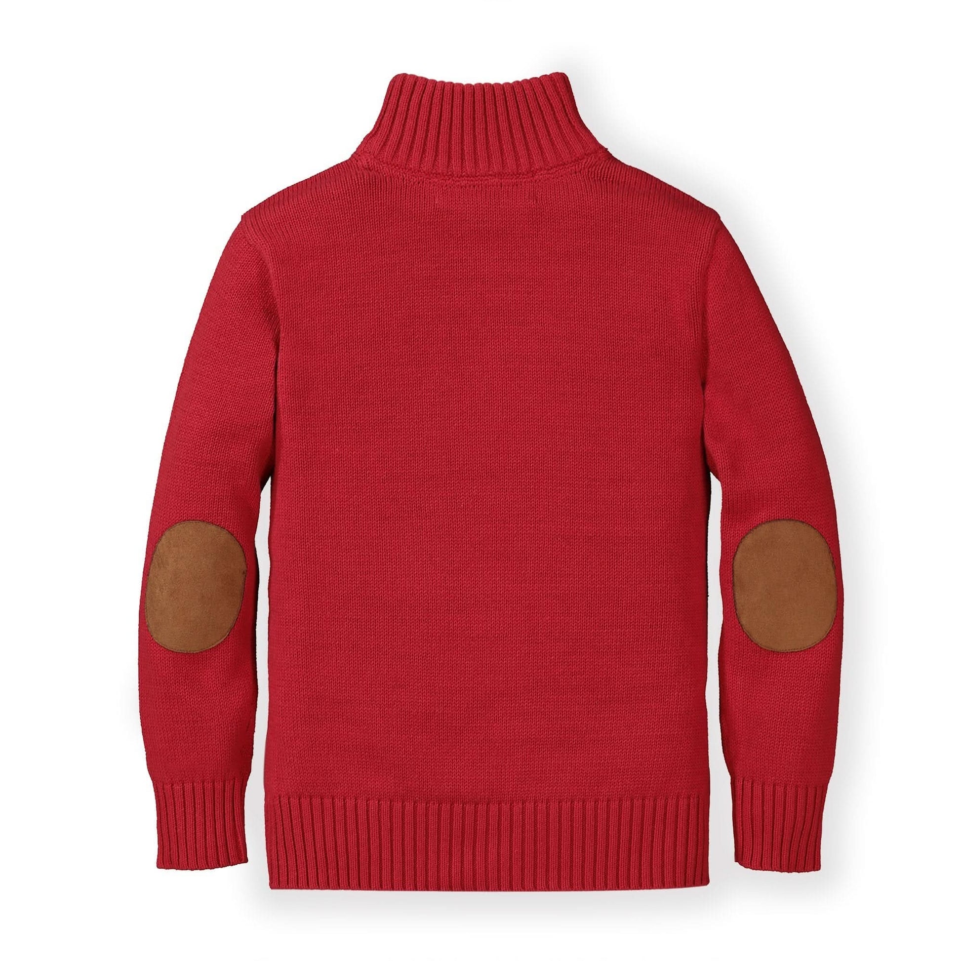 This soft sweater will be a cool weather wardrobe staple for your guy! Featuring a ribbed mock neck, front half zip for easy-on and easy-off, faux suede elbow patches, and our signature super cozy 100% organic cotton.